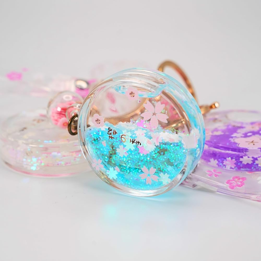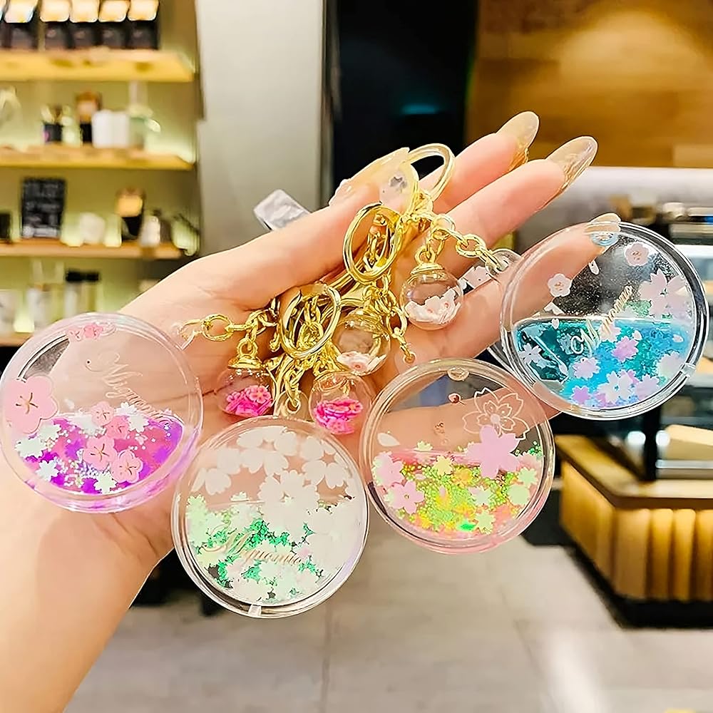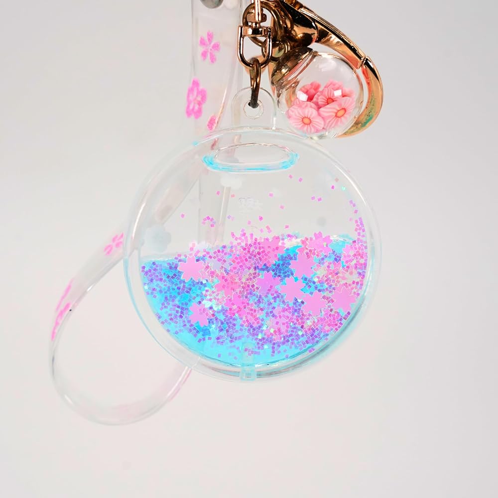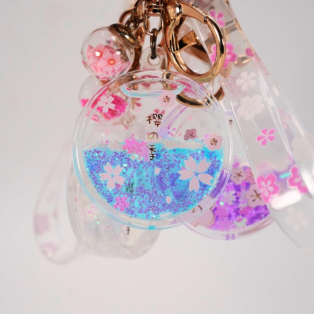 AESTHETIC DESIGN: The charm is infused with aesthetic floating cherry blossoms and glitters. This keychain is designed to make you smile and feel relax.