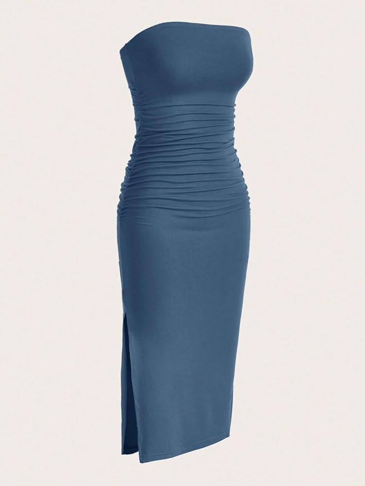 • ruched tube midi dress with slit hem for women