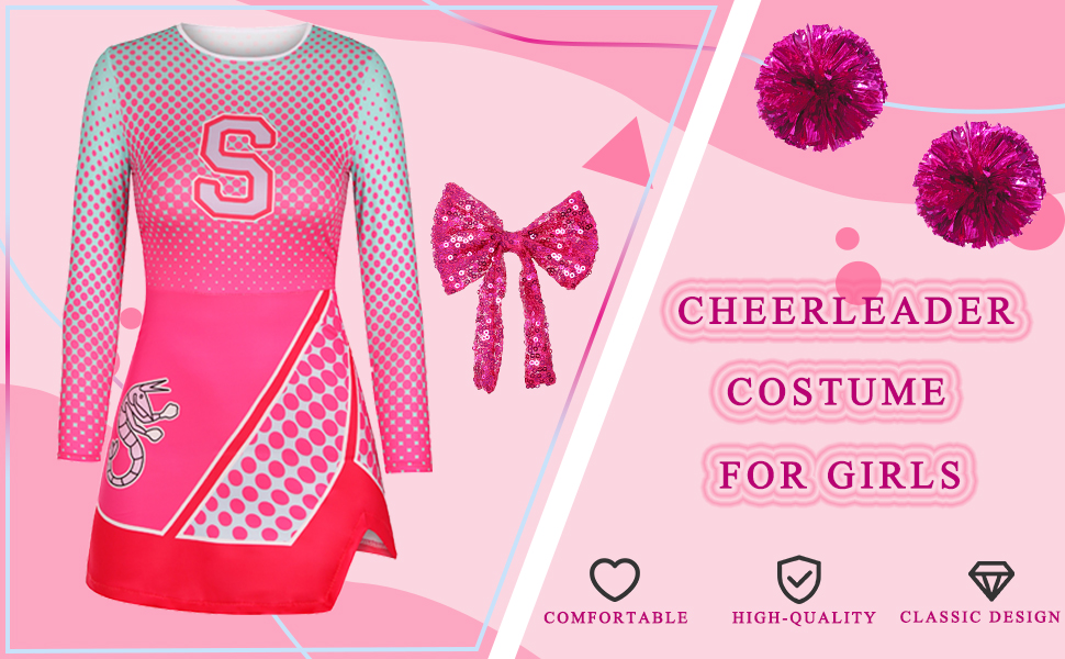 • تتضمن الحزمة: 1 × فستان المشجع الوردي + 2 × المشجع بوم بومس + 1 × حبل الشعر المطابق