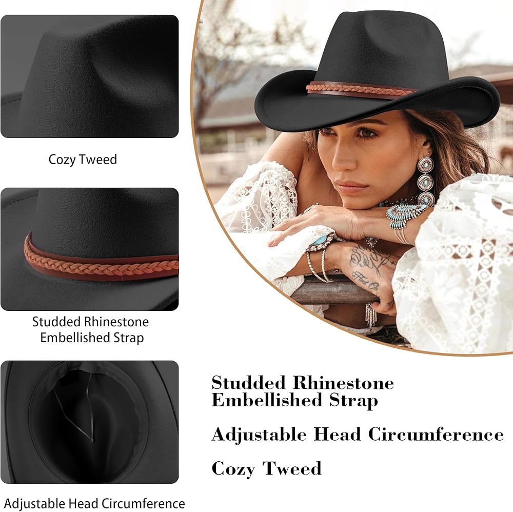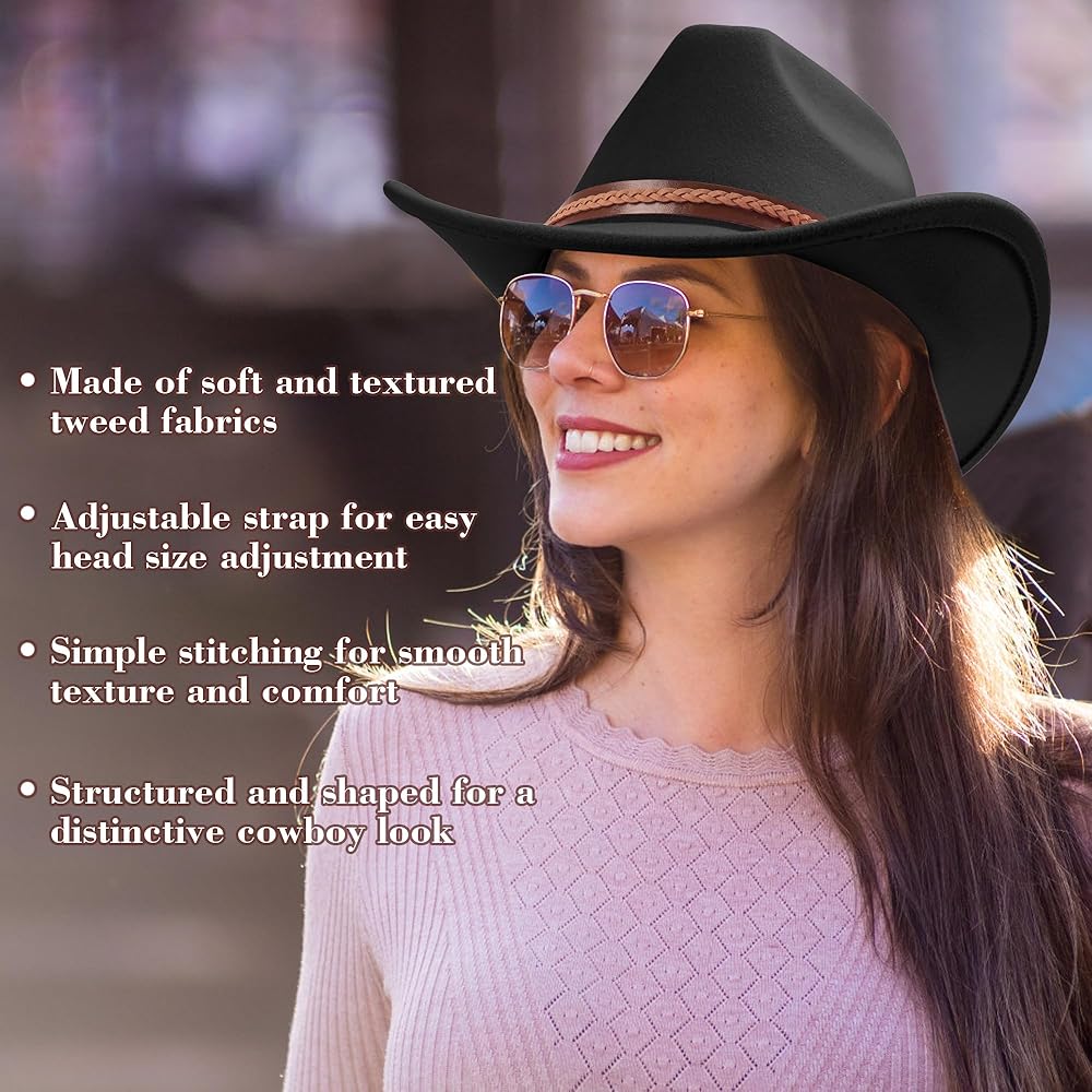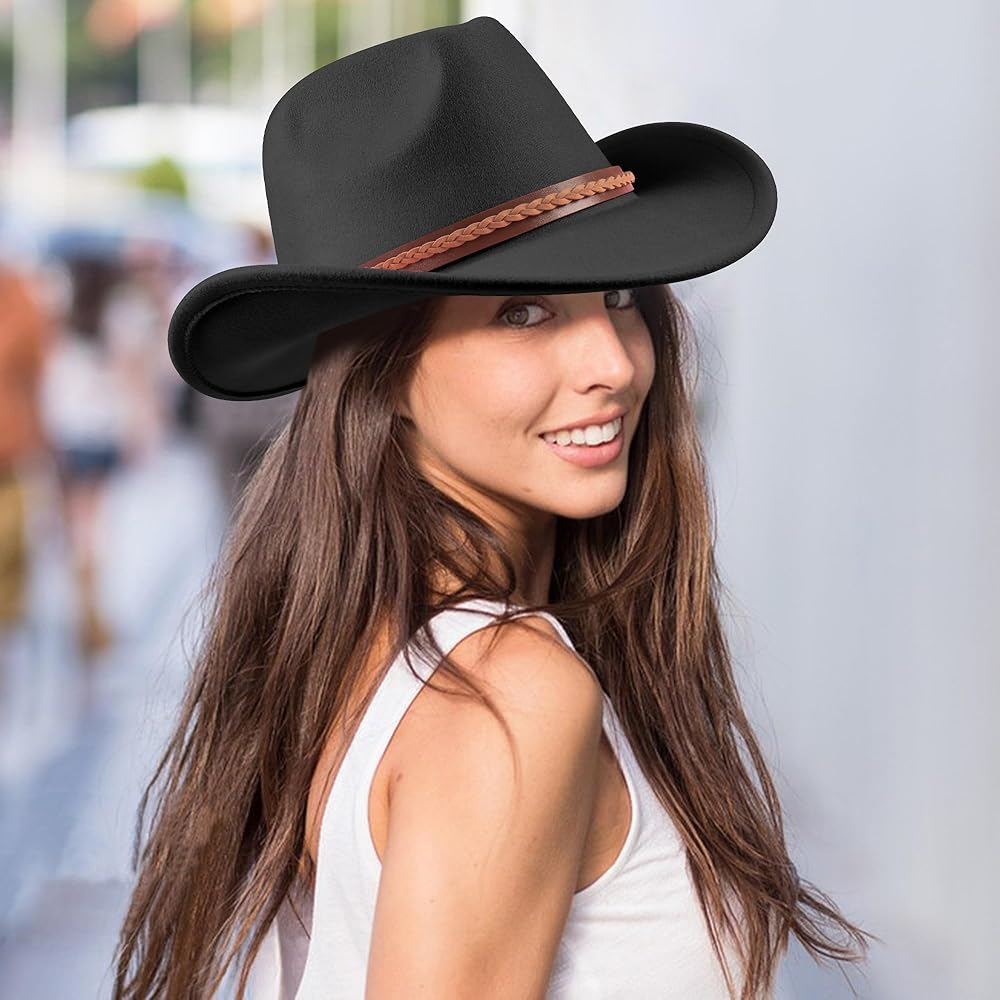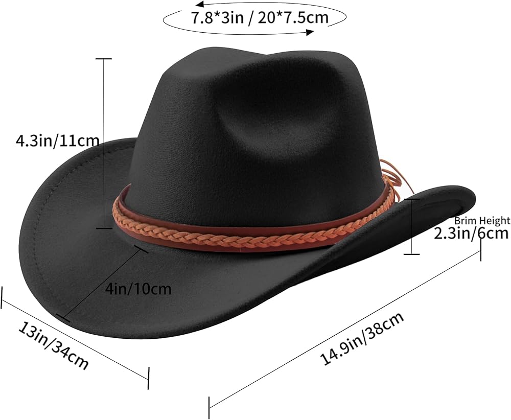 🥳【جودة ممتازة】مصنوعة من نسيج اللباد عالي الجودة، توفر قبعة راعية البقر الغربية هذه متانة فائقة وشعورًا بخفة الوزن. وهي مصممة للحفاظ على شكلها وتوفير تجربة ارتداء مريحة طوال عمرها الافتراضي.