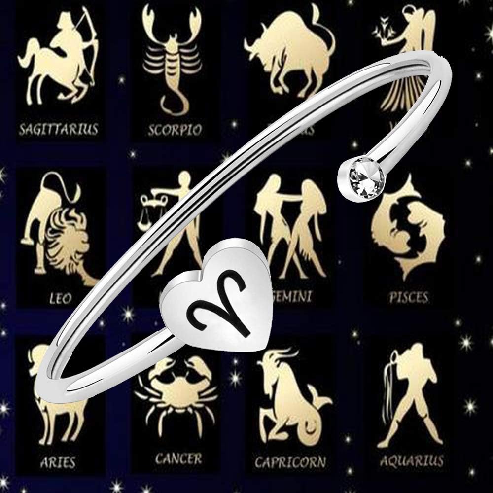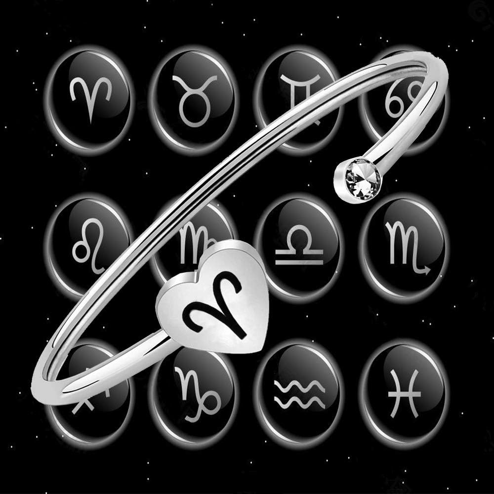 Zodiac Symbol Bracelets Zodiac Sign Cuff Bracelet with Birthstone Birthday Gift for Women Girls