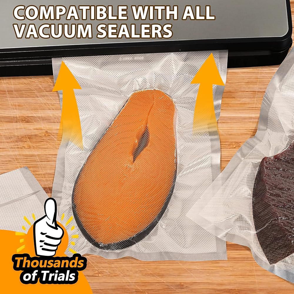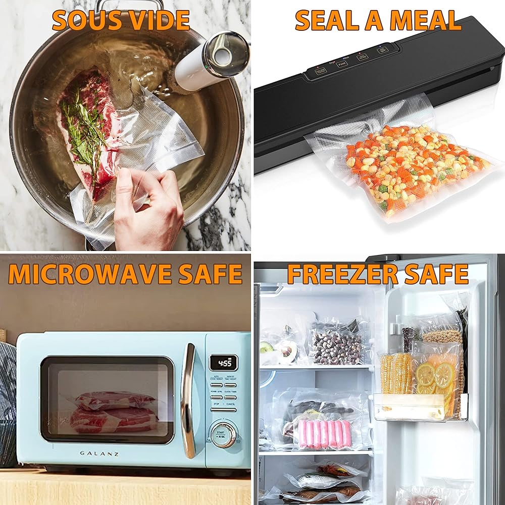 【متوافقة مع معظم ماكينات تفريغ الهواء المتوفرة في السوق ومتعددة الوظائف】يمكن أن تناسب أكياس التفريغ ذات سعة ربع لتر معظم آلات التفريغ، مثل NutriChef، وCabela's، وGERYON، وSeal a Meal، وNesco، وWeston، وZiploc وما إلى ذلك. رائعة للحوم وشرائح اللحم والخضروات والوجبات الخفيفة التخزين، حبوب القهوة، البستنة، المجوهرات، أوراق الشاي، المستندات، الإلكترونيات وما إلى ذلك. مثالي لفيديو Sous Vide، وإعداد الوجبات، وتخزين الفريزر، والميكروويف، والنزهات والتخييم، إلخ.