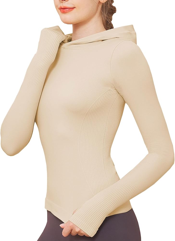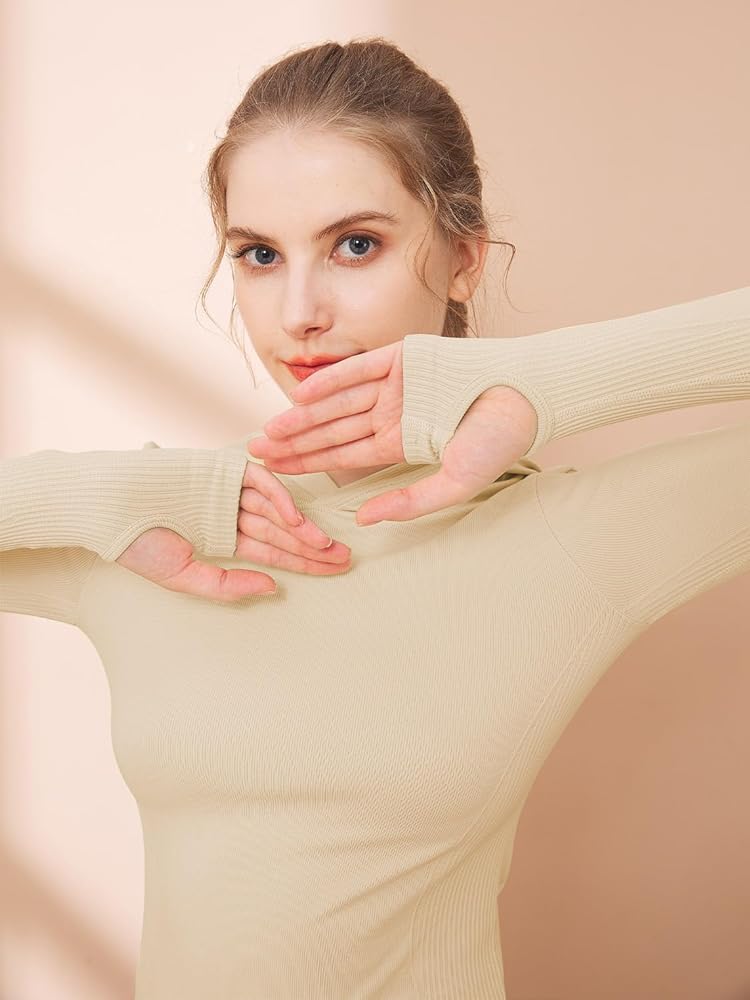 Chilylori قمصان طويلة الأكمام للتمرين للنساء قمصان طويلة الأكمام مع فتحات الإبهام قمصان نسائية سلسة للنساء