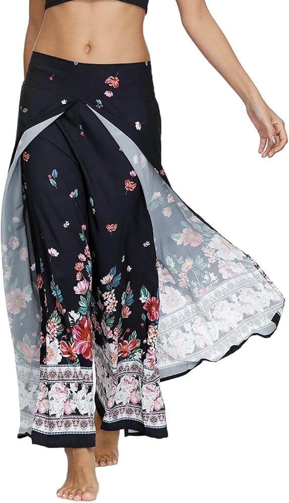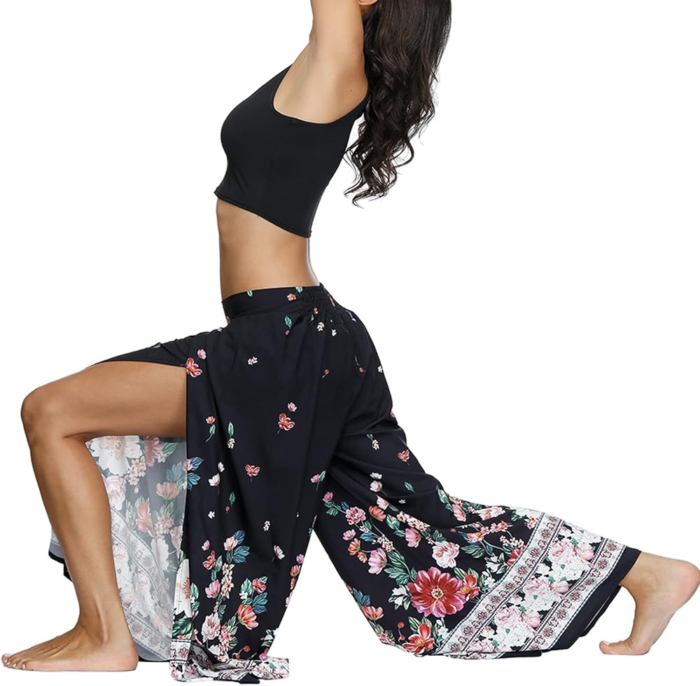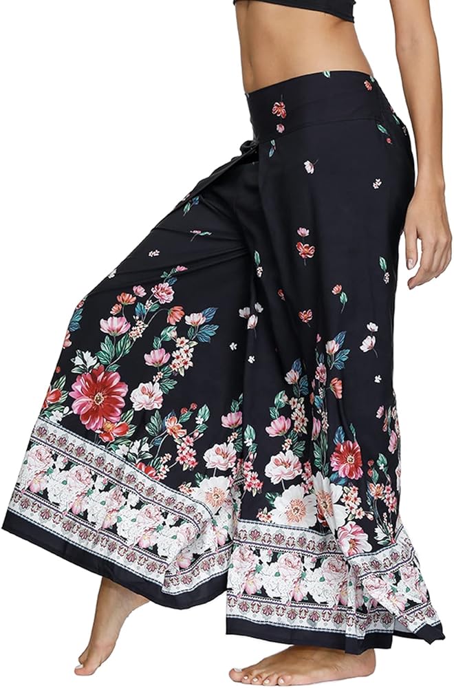 Size: Tag size SM fits US size S; Tag size LXL fits US size M/L; This palazzo, gaucho yoga pants give us a flattering silhouette and let us move around with ease. We love that this pair has a wide leg, straight leg, ankle-length, boho graphic, elastic waist, flowy style which is definitely a beautiful sustainable piece to have