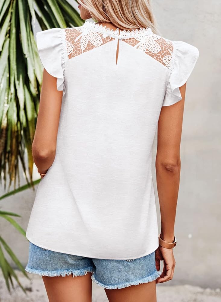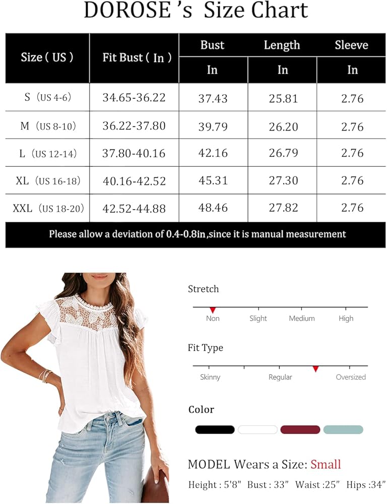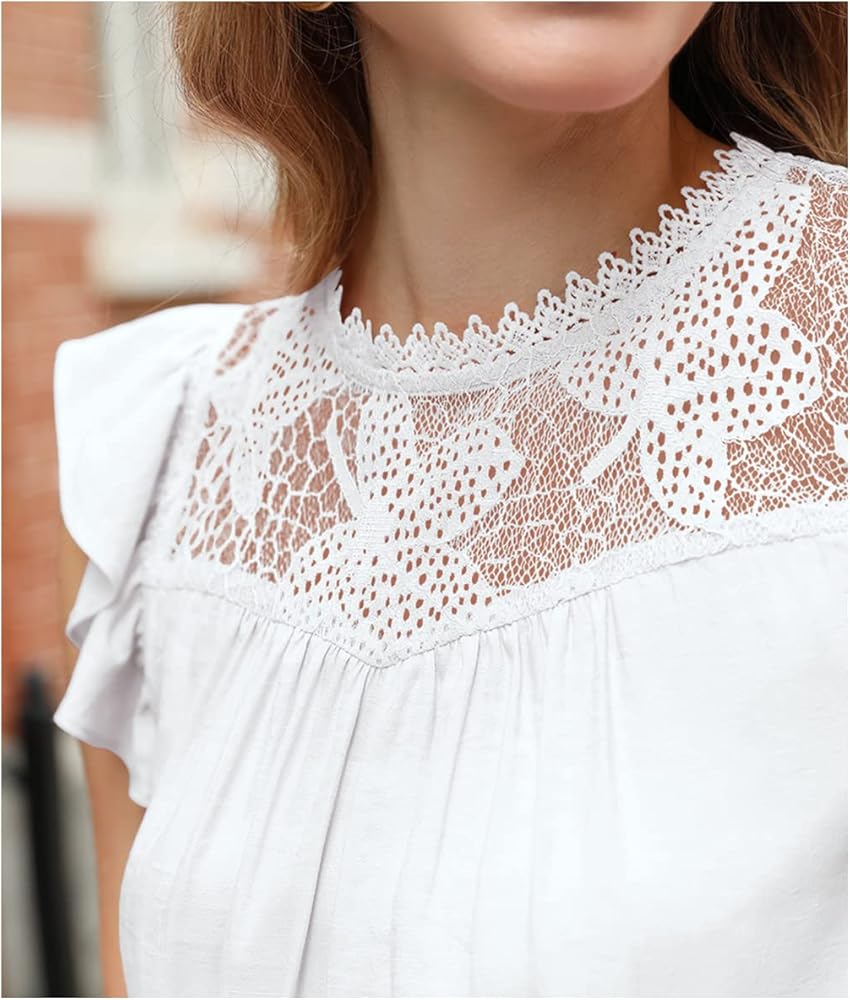 تفاصيل متباينة من الدانتيل؛ طاقم الرقبة؛ كم قبعة كشكش؛ ثقب المفتاح الخلفي. مبطن؛ أنيقة وأنثوية؛ بلوزة بيبي دول من الدانتيل المتدفق