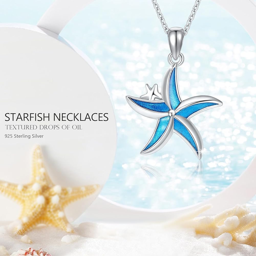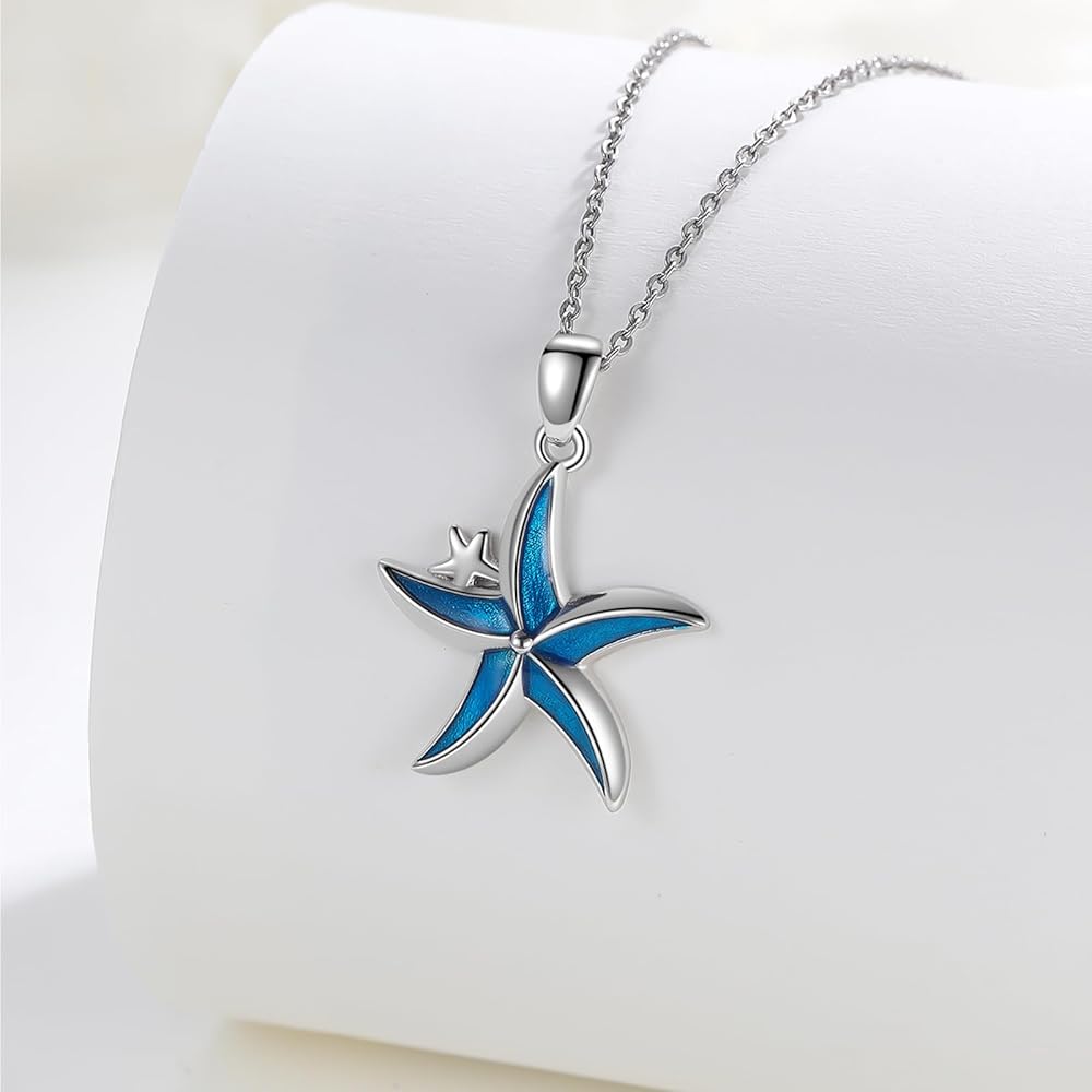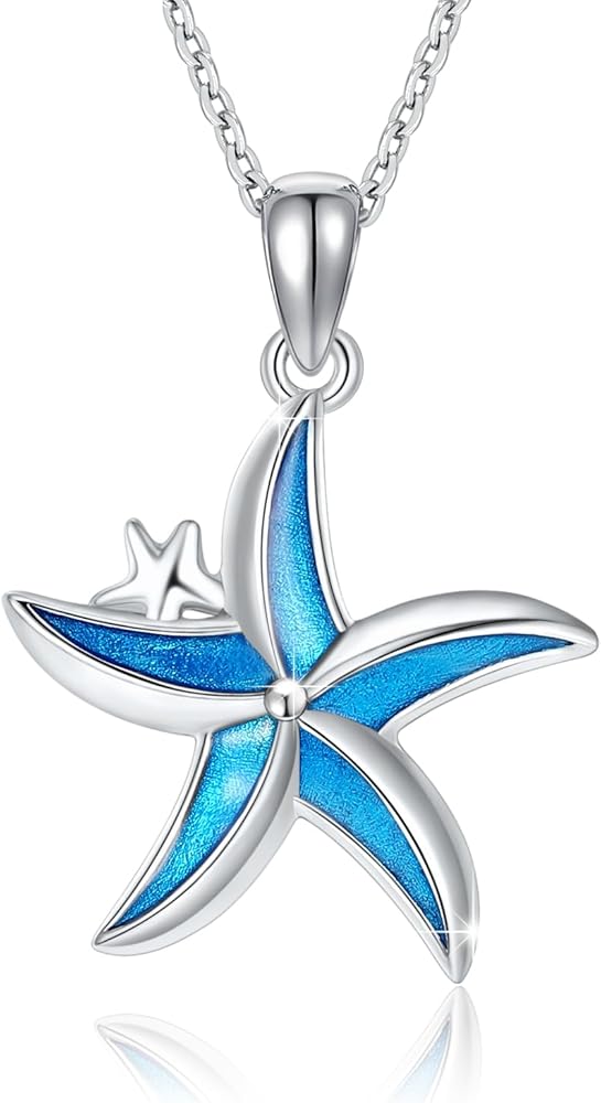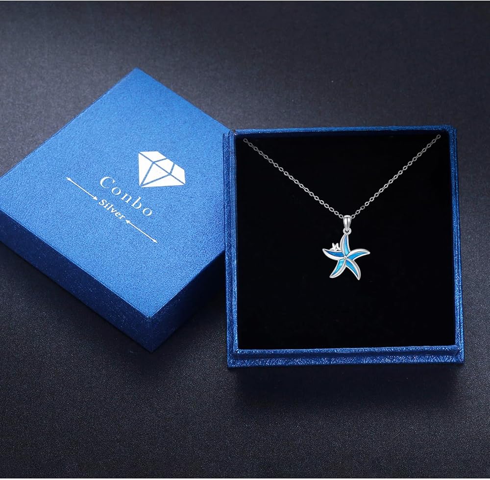 كونبو قلادة من الفضة الاسترليني عيار 925 بتصميم نجم البحر الازرق بتصميم نجم البحر وشاطئ هاواي، هدايا مجوهرات للنساء والبنات والام وعيد الميلاد، بدون احجار كريمة