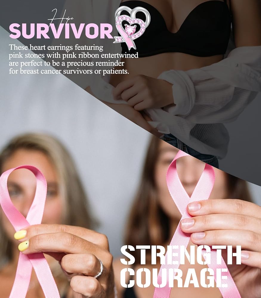♥ أنت أقوى بكثير مما تعتقدين ♥ تم تصميم هذه الأقراط الشريطية الوردية لأي شخص تم تشخيصه حاليًا بالسرطان أو أحد الناجين. ألهم أحبابك أو نفسك المتضررة من سرطان الثدي من خلال أقراطنا ذات الشريط الوردي المفعمة بالأمل والقلب.