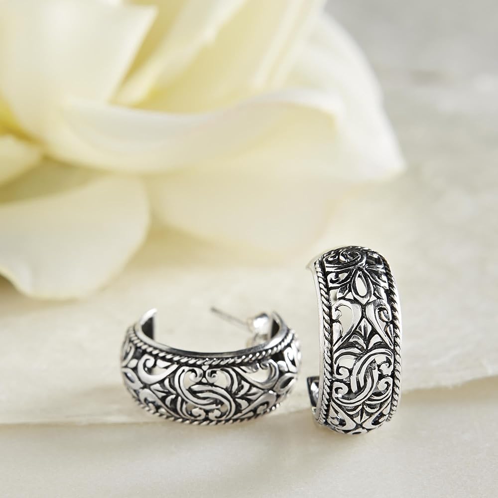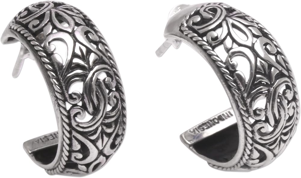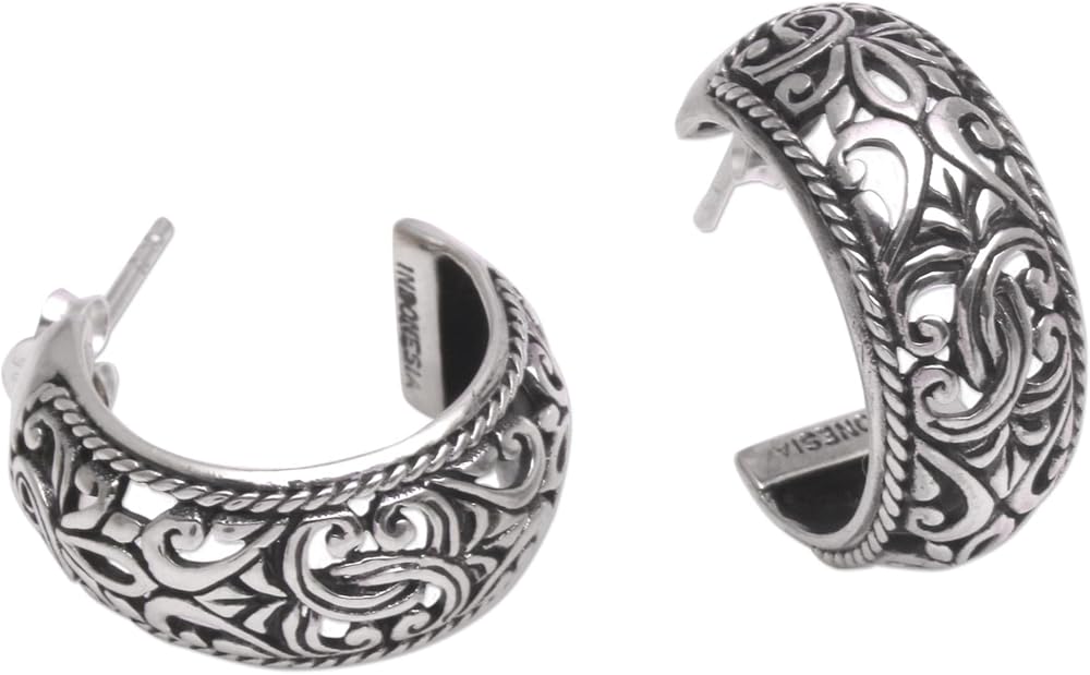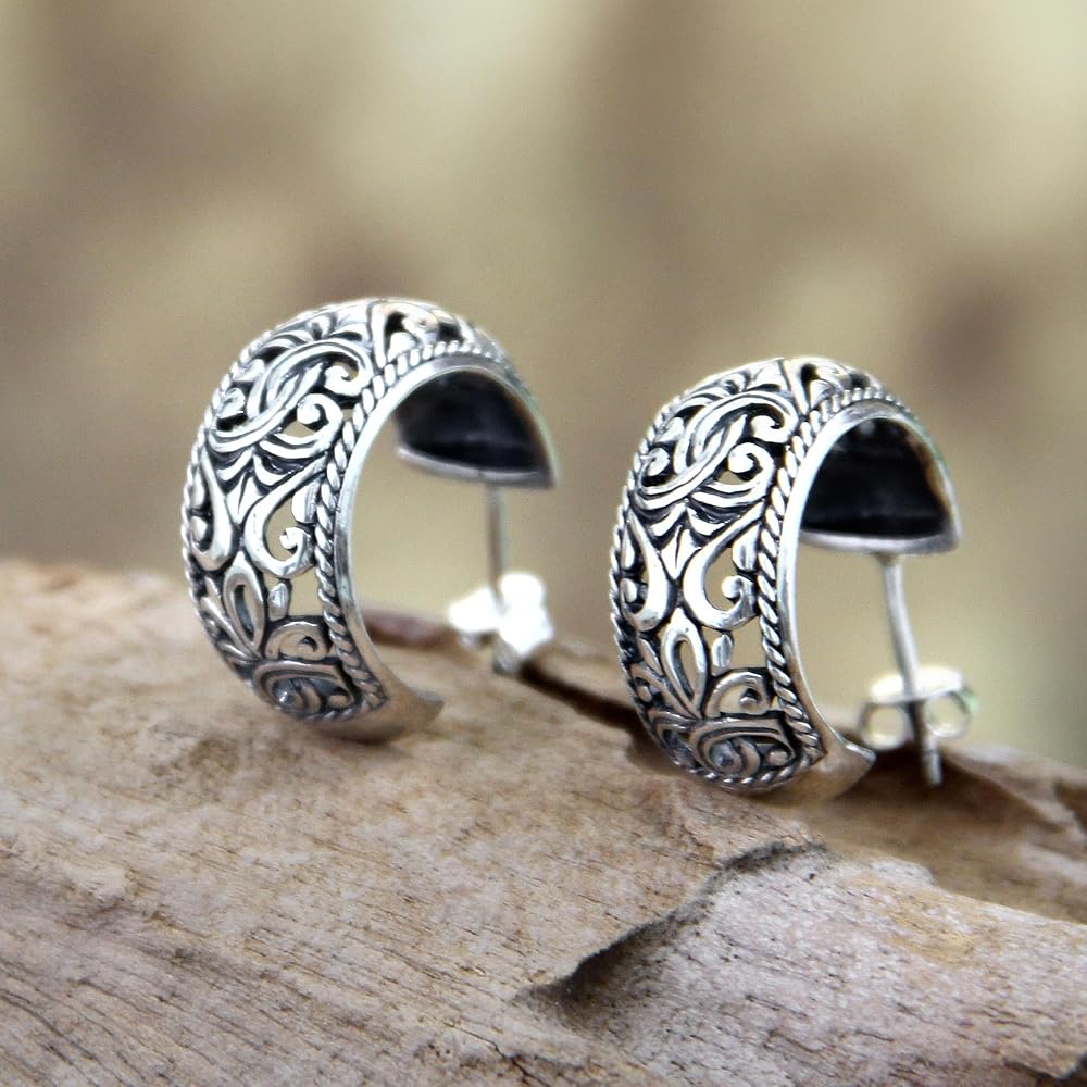 About this item: Bali's hanging gardens are the inspiration for thesesterling silver half-hoop earrings from Kadek Hendra. The designs are first hand-carved in wax, from which a mold is made. When molten silver is poured into the mold, the wax melts, leaving a perfect cast of the original design.