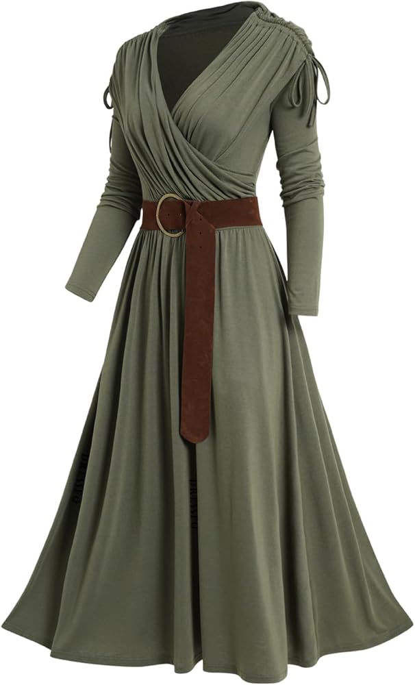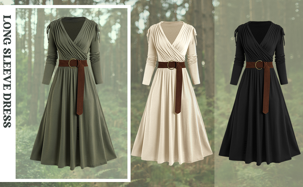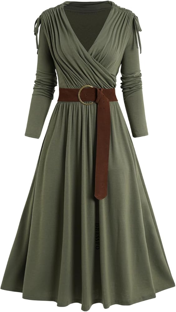 【القطع】فستان طويل للنساء يأتي برقبة على شكل حرف V، وأكمام طويلة، بدون أكتاف، وحزام غير قابل للإزالة وحاشية انسيابية لملاءمة أنحف. مع الألوان الصلبة، يمكن لهذا الفستان الطويل أن يكمل قطعك في جميع المواسم.