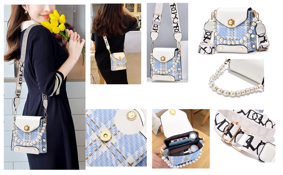 المقاس: حقائب اليد النقدية، الطول: 7.48 بوصة (19 سم)، العرض: 4.72 بوصة (12 سم) الحد الأقصى لطول الحزام حوالي 46 بوصة (116 سم). تصميم مزدوج الطبقات - يمكنه حمل هاتفين خلويين. يمكن أيضًا حمل أحمر الشفاه ومستحضرات التجميل ومفاتيح السيارة والأنسجة.