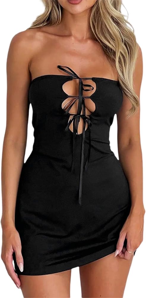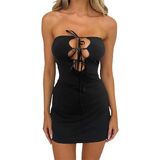 التصميم: فستان صيفي قصير للنساء، فستان شبكي بدون أكمام بدون ظهر بدون أكتاف، تصميم مجوف من الأمام، عصري جدًا.