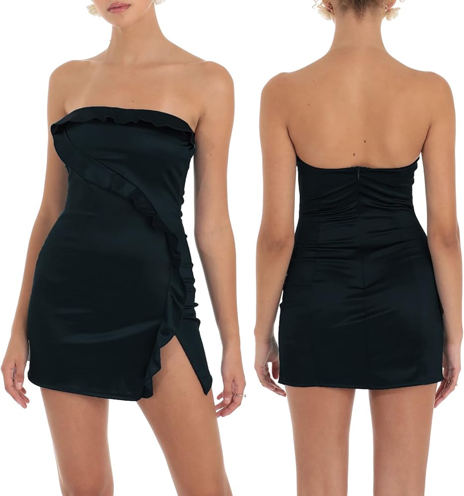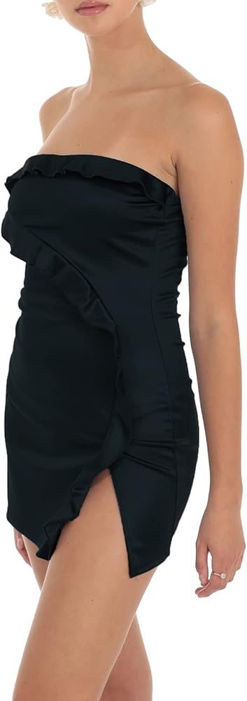 المواد: فستان قصير بدون حمالات مصنوع من مادة البوليستر، خفيف الوزن، آمن على البشرة وسهل الغسل. لا داعي للقلق من أنه سيضر بشرتك.