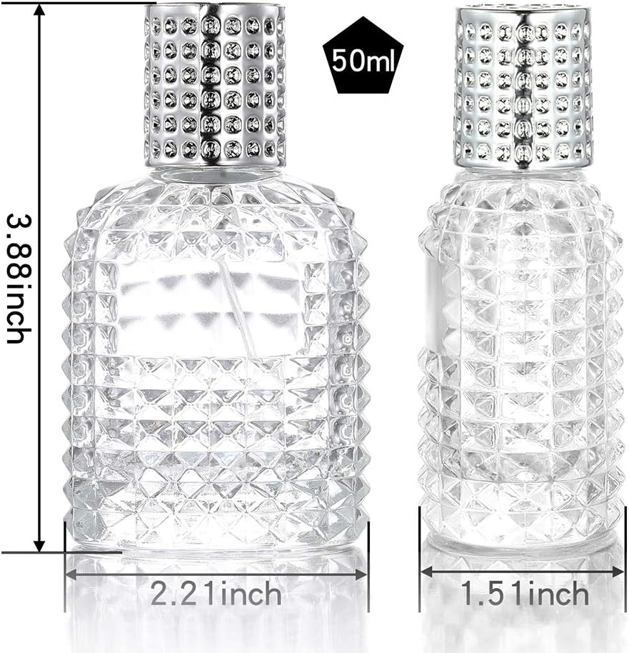 عبوتين من زجاجات رذاذ زجاجية فارغة سعة 30 مل و50 مل من لوجيري، زجاجات عطر رذاذ فارغة قابلة لإعادة الملء، زجاجة رذاذ مع 4 أنواع مجانية من موزع العطور (غطاء فضي 50 مل وغطاء فضي 30 مل)