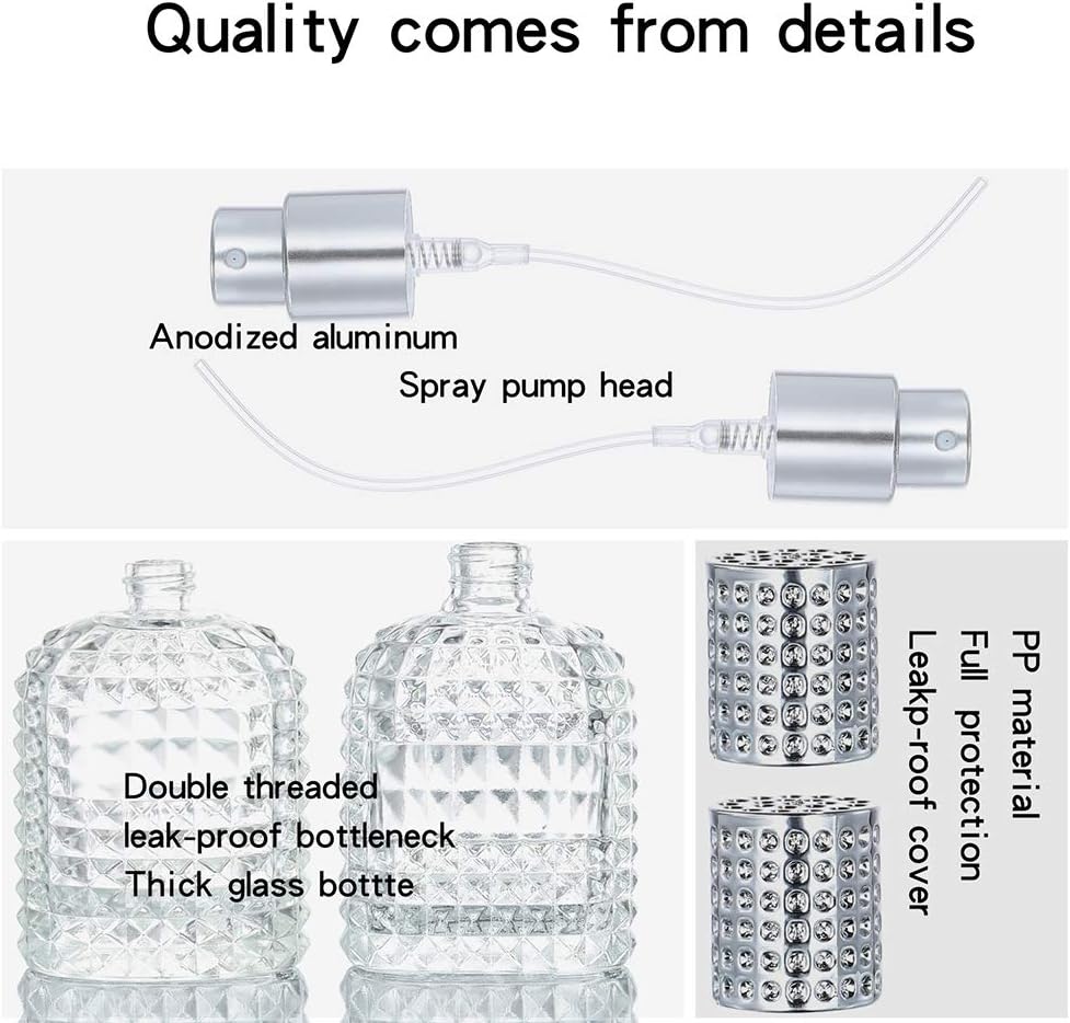 Material: Made of thick, sturdy flint glass, metal atomizer provides a fine spray mist