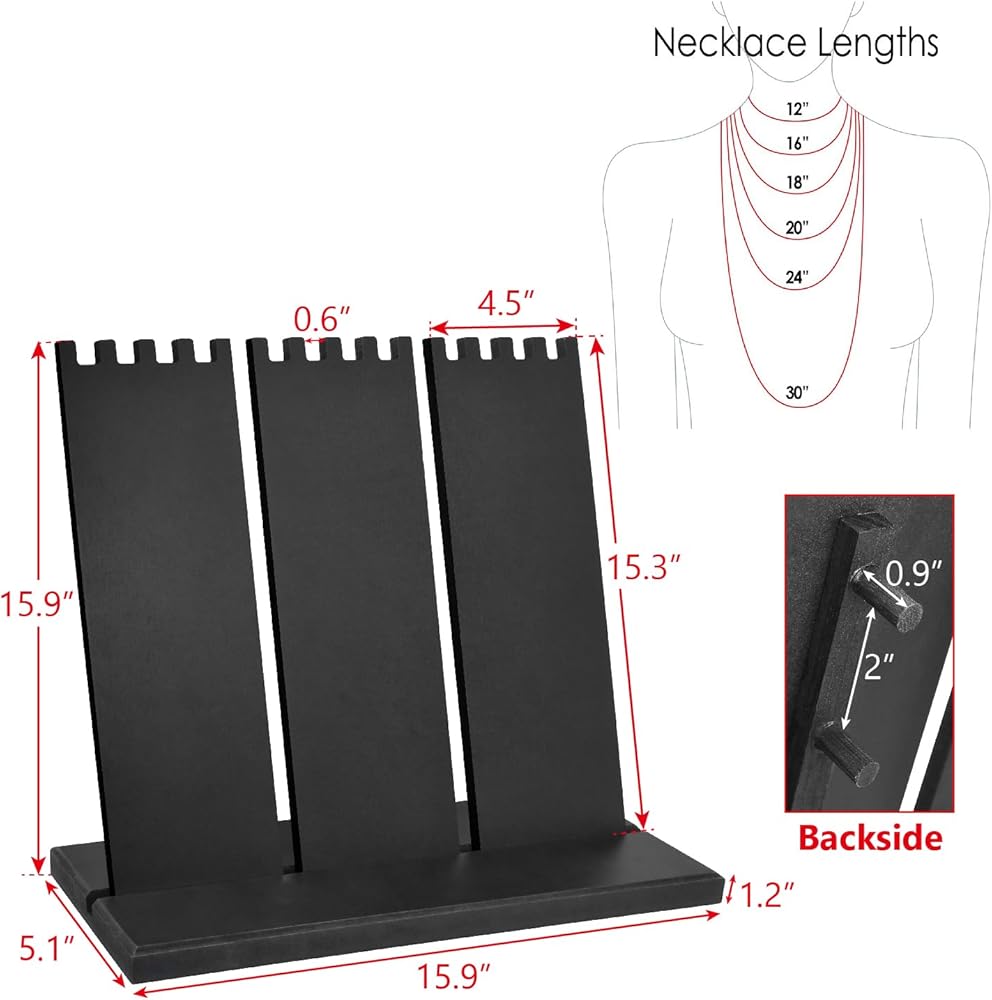 حامل عرض المجوهرات - تتيح لك الأوتاد المصممة بعناية على الجزء الخلفي من الألواح ضبط طول القلائد بسهولة على الشاشة الأمامية، مما يضمن عرض كل قطعة بشكل مثالي. مثالية للمتاجر أو المعارض التجارية أو المعارض الحرفية أو المعارض التجارية أو عرض واجهة متجر البيع بالتجزئة أو الاستخدام الشخصي.
