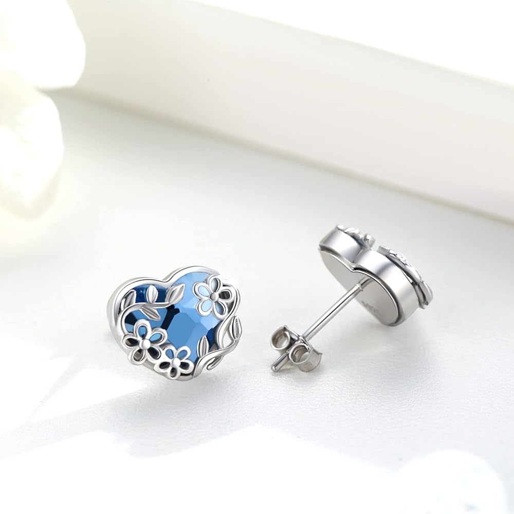 أقراط الزهور - أقراط الزهور الصغيرة هي رمز للحب والأمل، وتمثل الأناقة والبساطة والنقاء. زهور وأوراق الأقحوان البسيطة ممزوجة بالكريستال الأزرق، مبهرة للملابس اليومية.