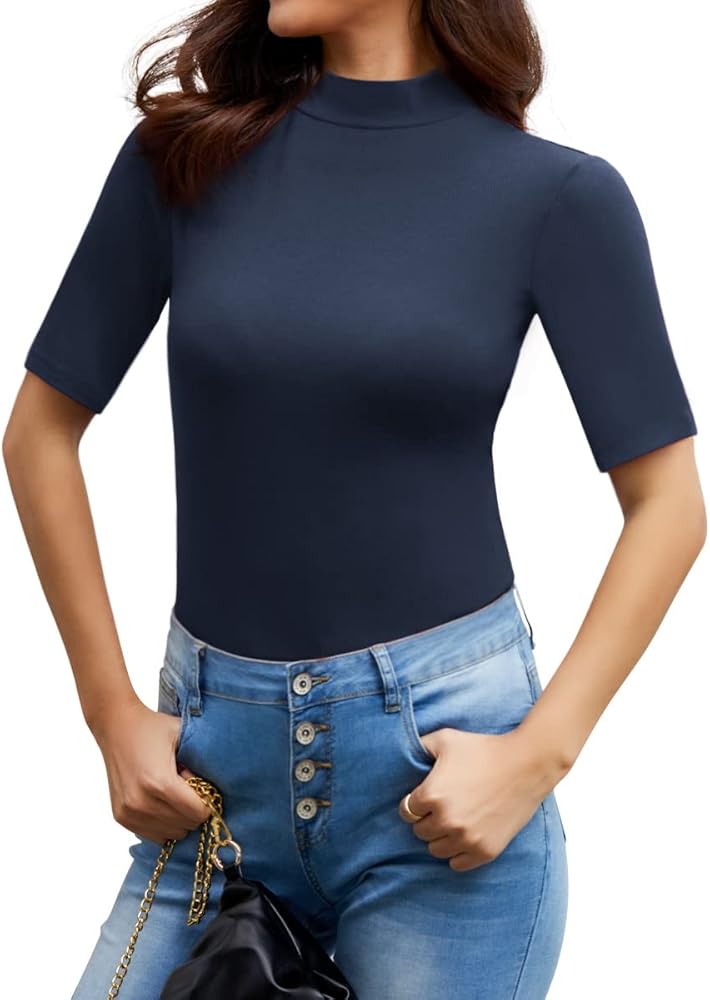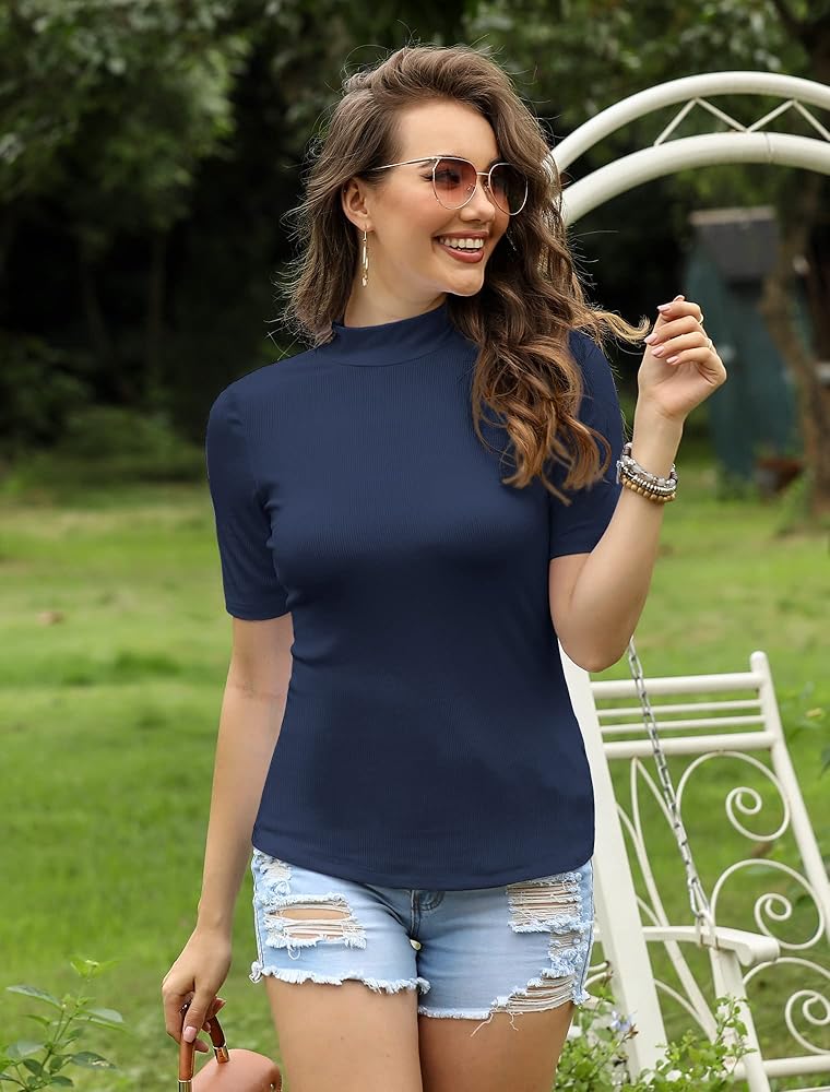 السمات: رقبة وهمية، نصف كم، نحيف، متمدد، مضلع. هذه القمصان الأساسية نصف كم لها مظهر قابل للتخصيص، فائقة النعومة. بفضل قصته التنحيف ومظهره العصري، يمكنك ارتداؤه بسهولة مع السراويل الضيقة أو الجينز أو سترة الشيفون أو المعطف أو السترة أو زوج من سراويل اليوغا.