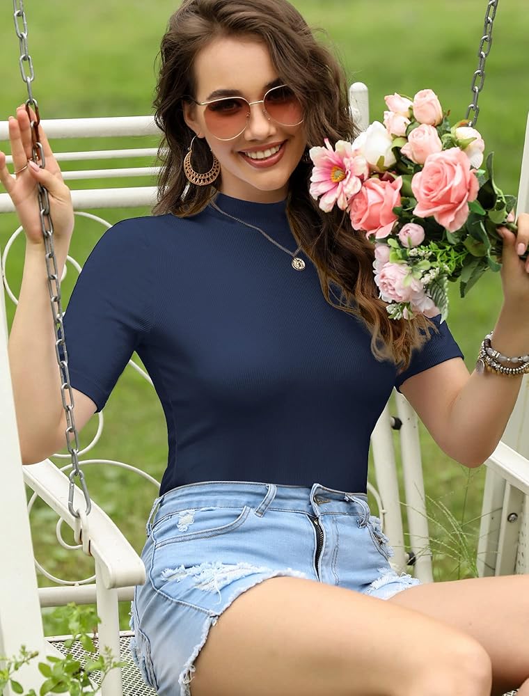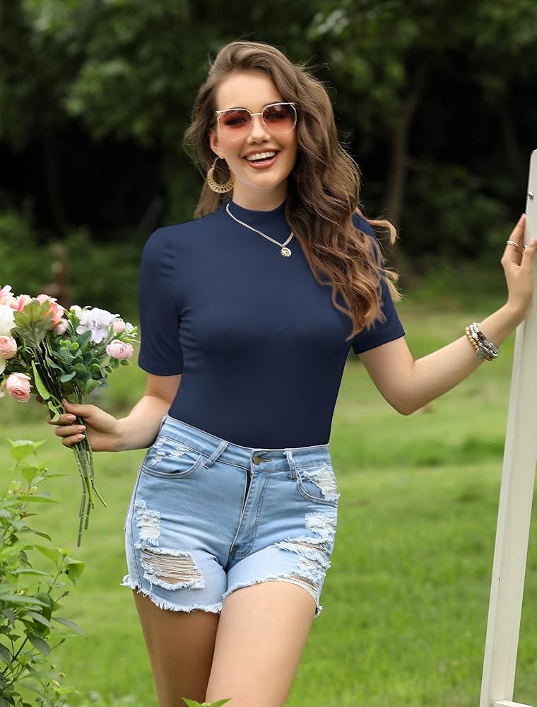 المواد: القمصان النسائية نصف الأكمام مصنوعة من 97% بوليستر + 3% سباندكس. إنه قابل للتمدد، وخفيف الوزن، ومريح، وملائم تمامًا وناعم. الشعور وكأنه "الجلد الثاني".