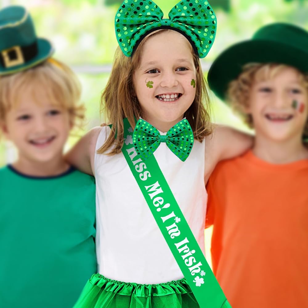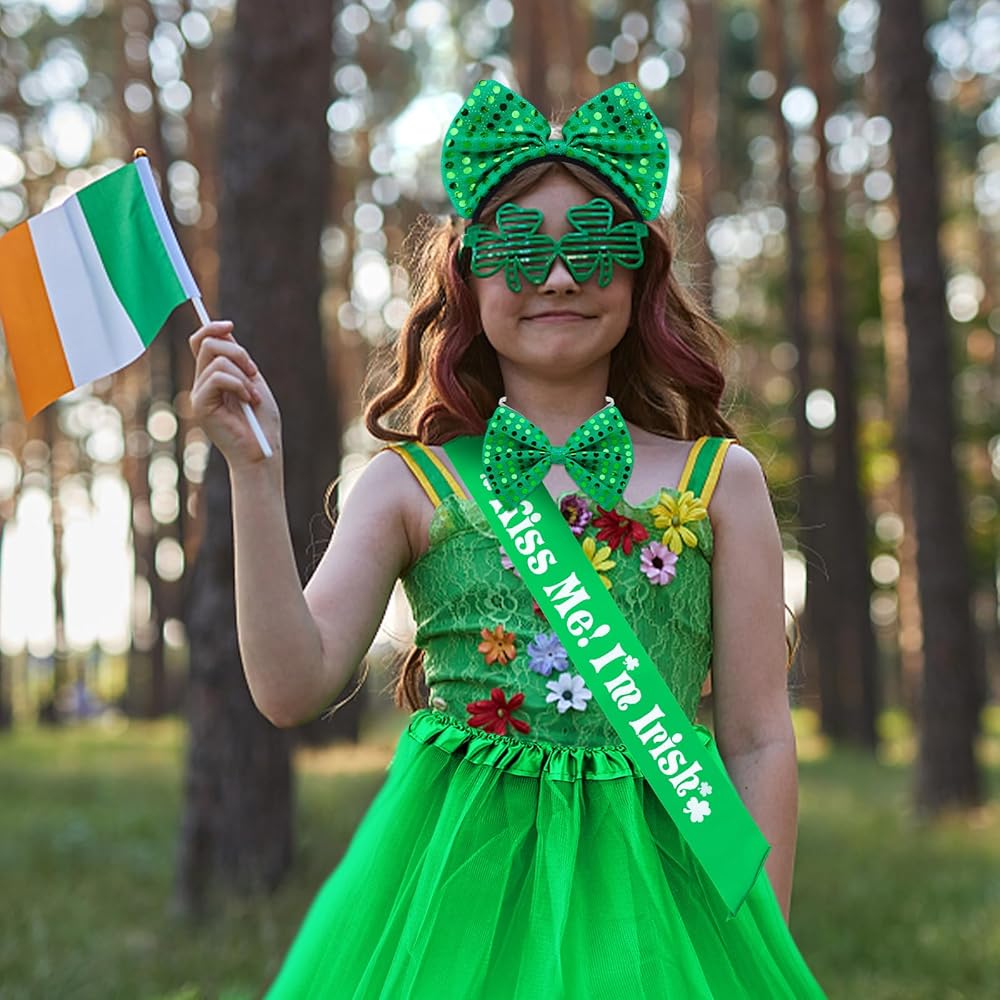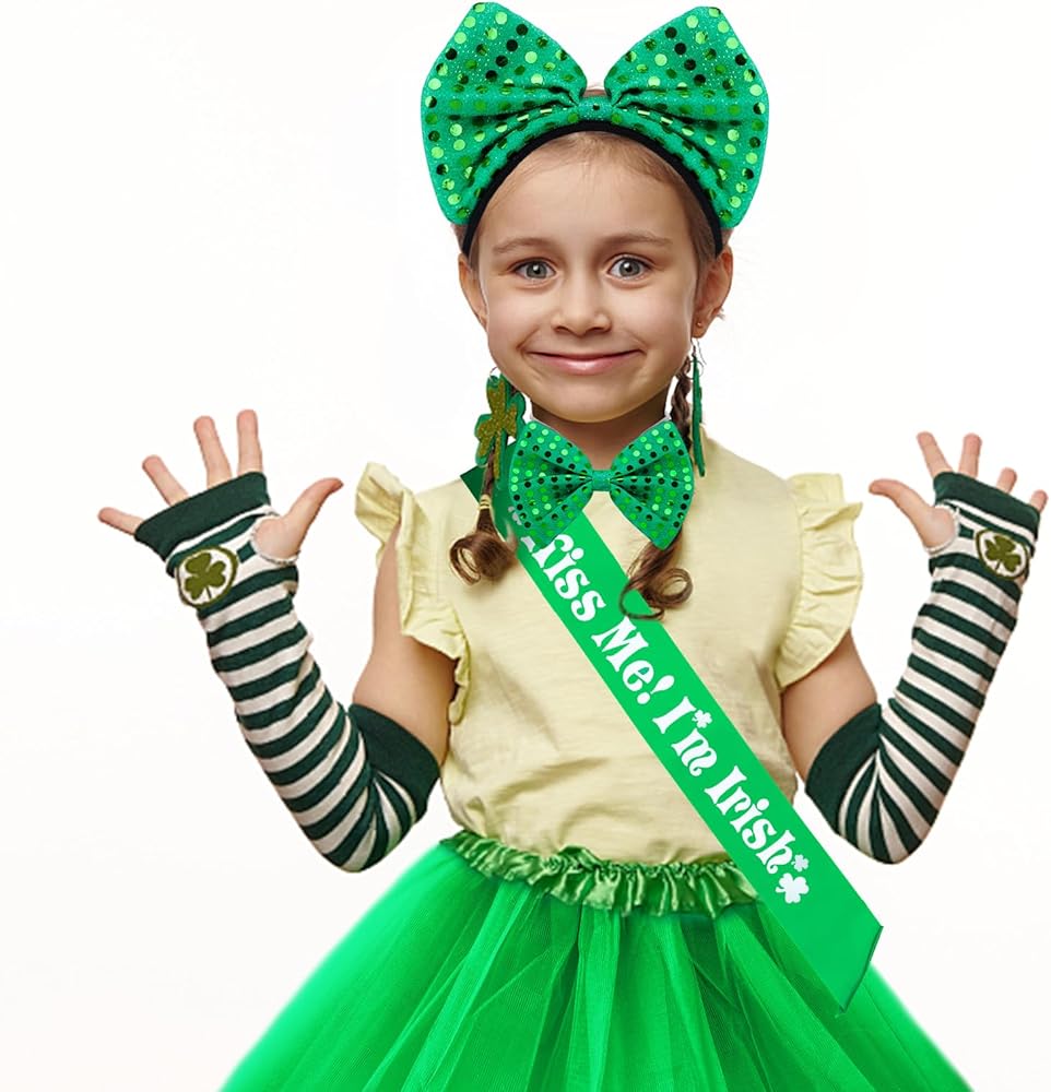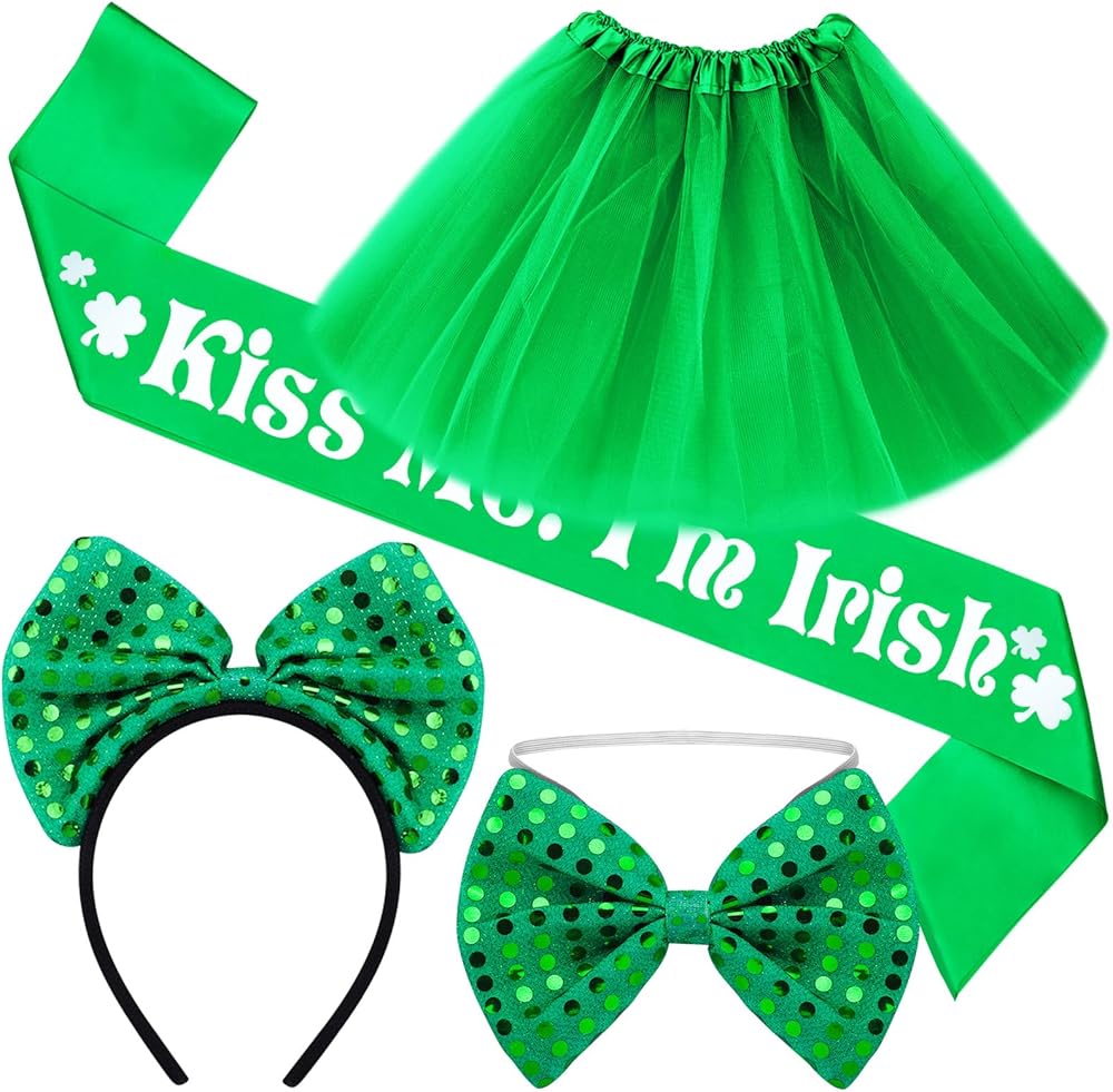 مجموعة إكسسوارات عيد القديس باتريك: تتضمن العبوة تنورة توتو خضراء وحزام كتف كيس مي وشريط رأس أخضر وربطة عنق. مجموعة إكسسوارات زي عيد القديس باتريك مثالية للنساء والفتيات. سي سي سي