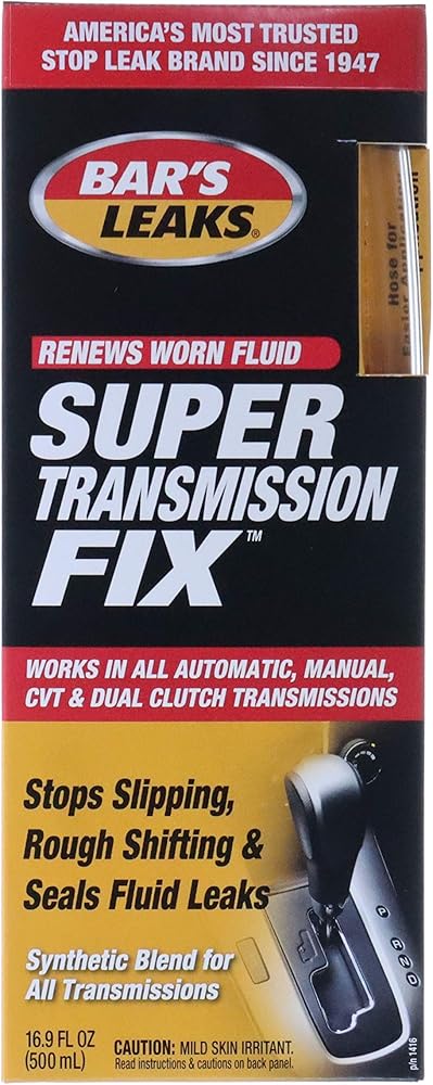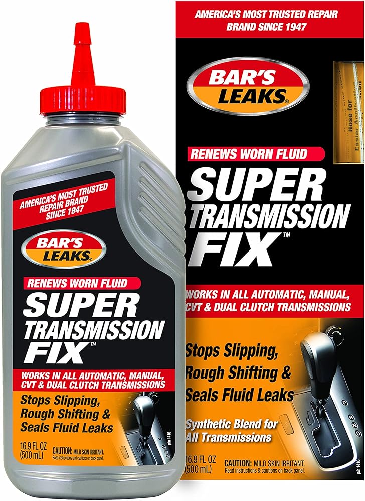 بارز ليك سوبر ترانسميشن فيكس هو مزيج اصطناعي لمعالجة سائل ناقل الحركة والسدادات والأسطح المعدنية والأشرطة وألواح القابض.