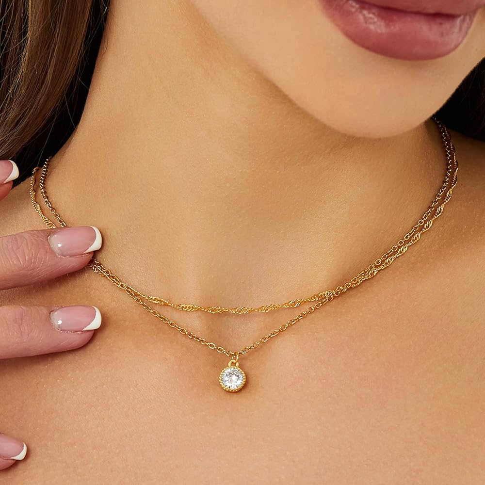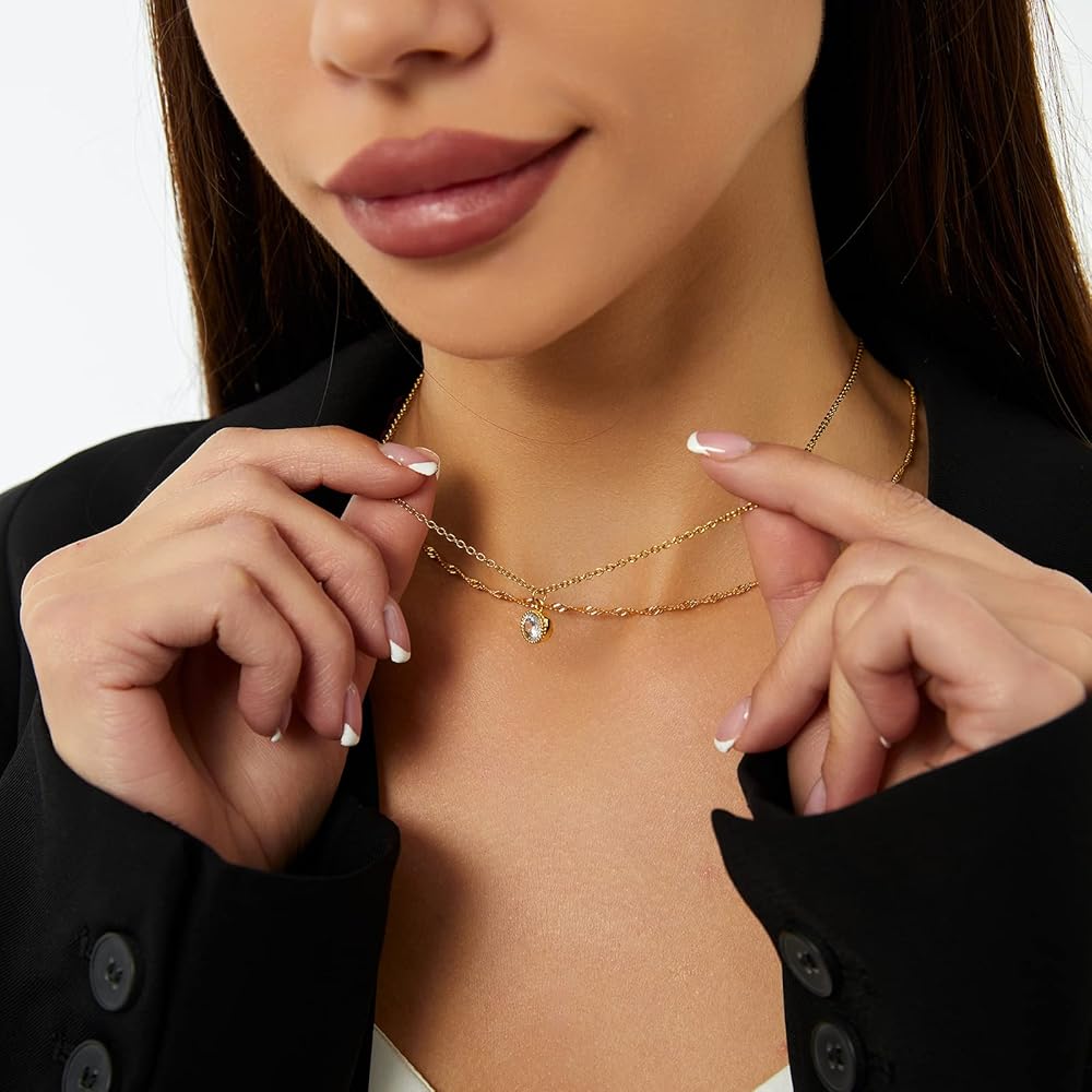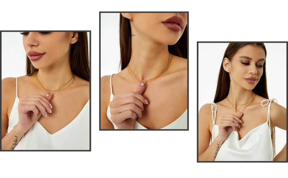 • DIAMOND NECKLACE - Simple and elegant necklace, not fade. Each necklace can be worn separately or together for a layered look with other chains.