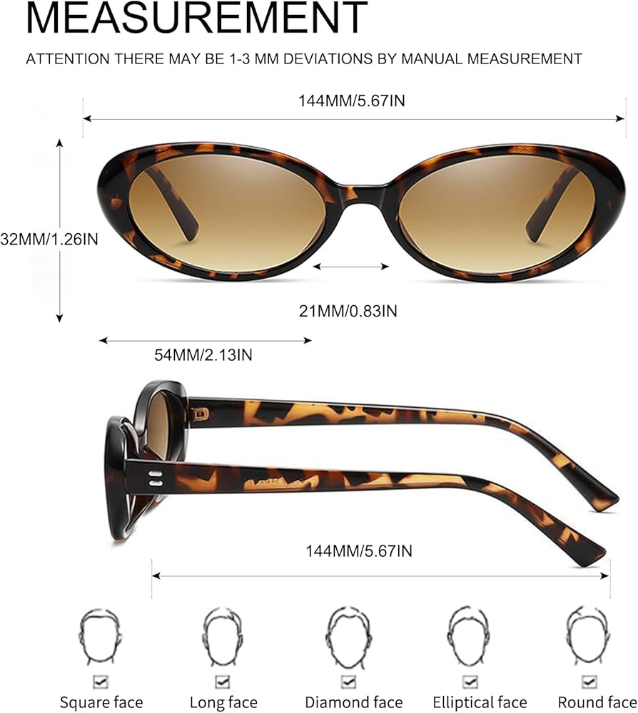 نظارات صغيرة لطيفة: نظارات بيضاوية ضيقة ونحيفة، إنها أكثر مثالية للوجه الصغير، شيء مثل المدرسة القديمة الأنيقة، أظهر مفضلتك الفريدة. اختيارات مثالية للحفلات والارتداء اليومي