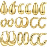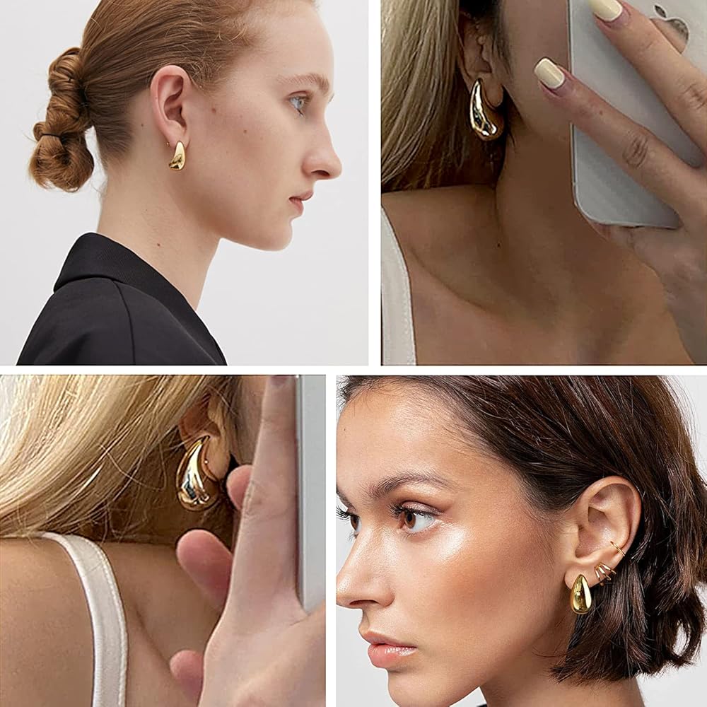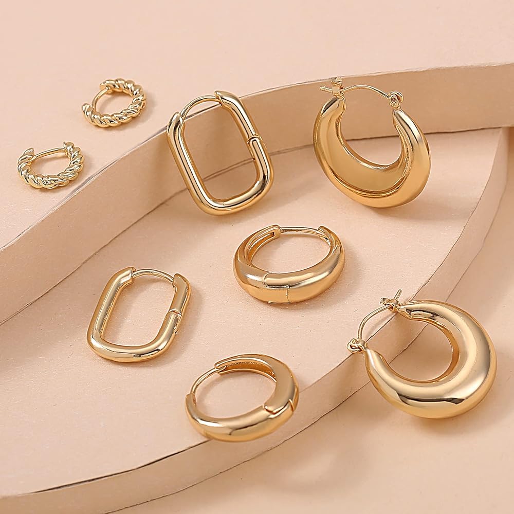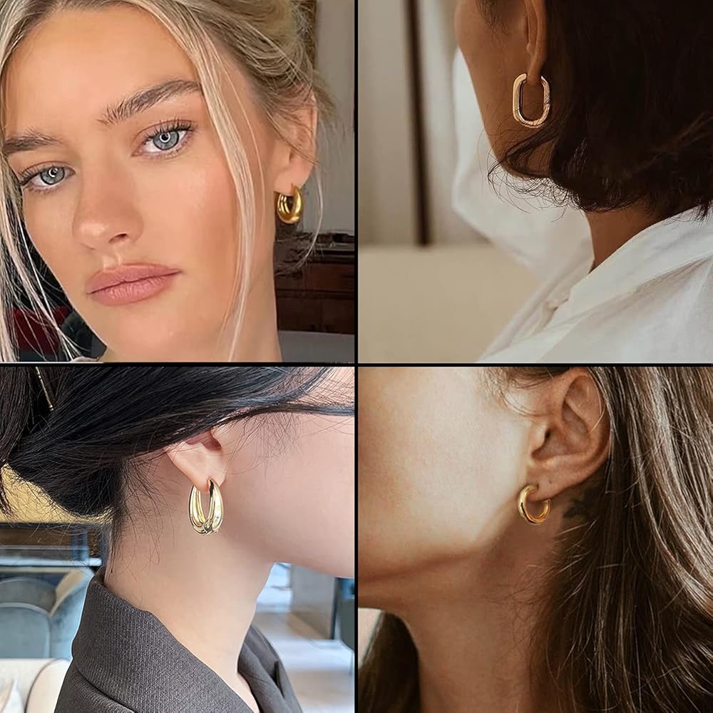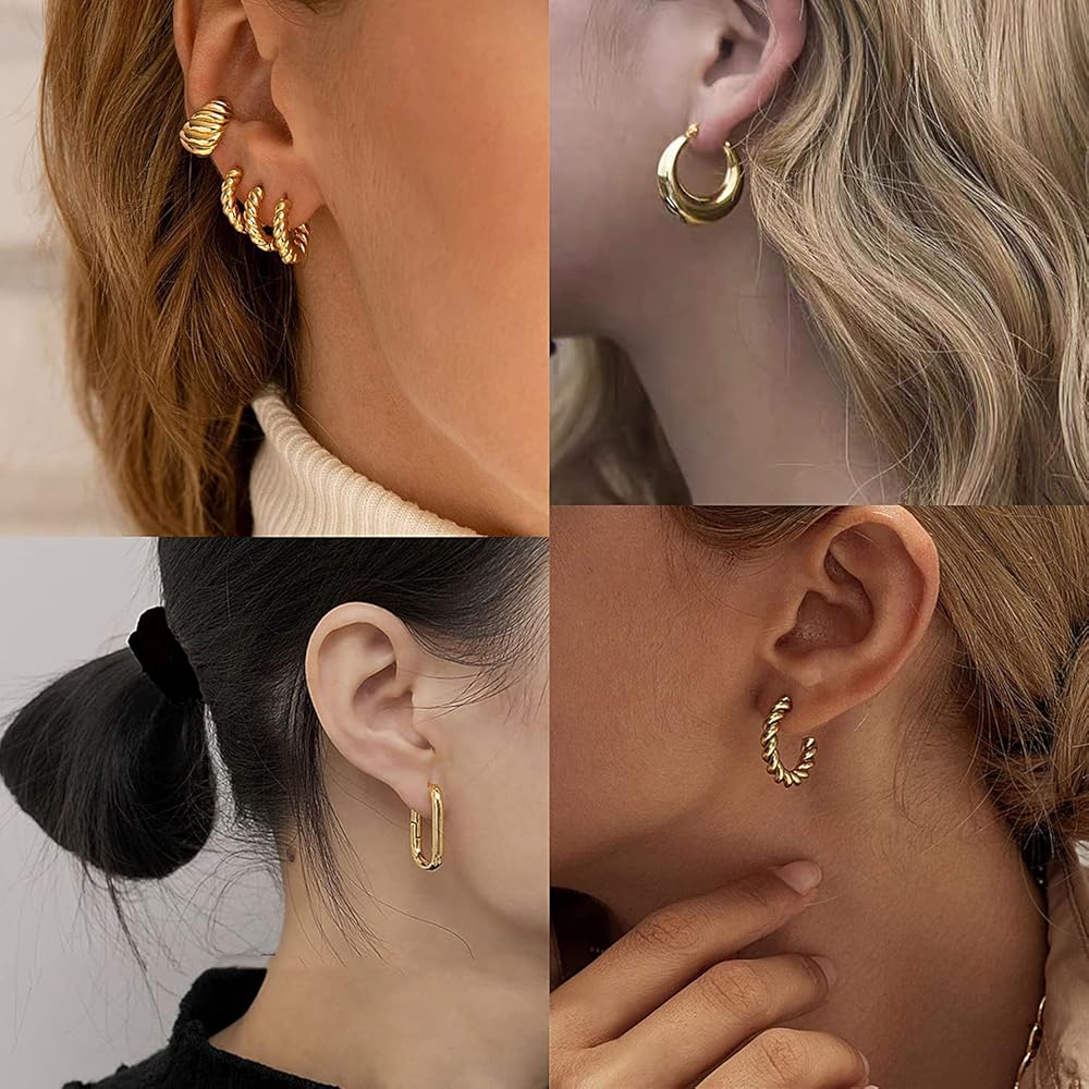 مجموعة الأقراط الذهبية: سوف تحصل على 9 أزواج من الأقراط الذهبية المكتنزة بأشكال مختلفة. تحظى أنماط الأقراط الذهبية هذه بشعبية كبيرة وتمثل عنصر الموضة الحالي.