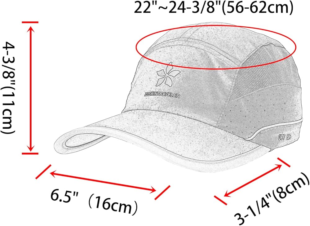 • المقاس: محيط الرأس 22 بوصة ~ 24-3/8 بوصة (56-62 سم)، شريط فيلكرو قابل للتعديل مع شريط مطاطي على الظهر، عمق القبعة 4-3/8 بوصة (11 سم)، حافة القبعة 3-1/2 بوصة، واحد الحجم يناسب معظم.