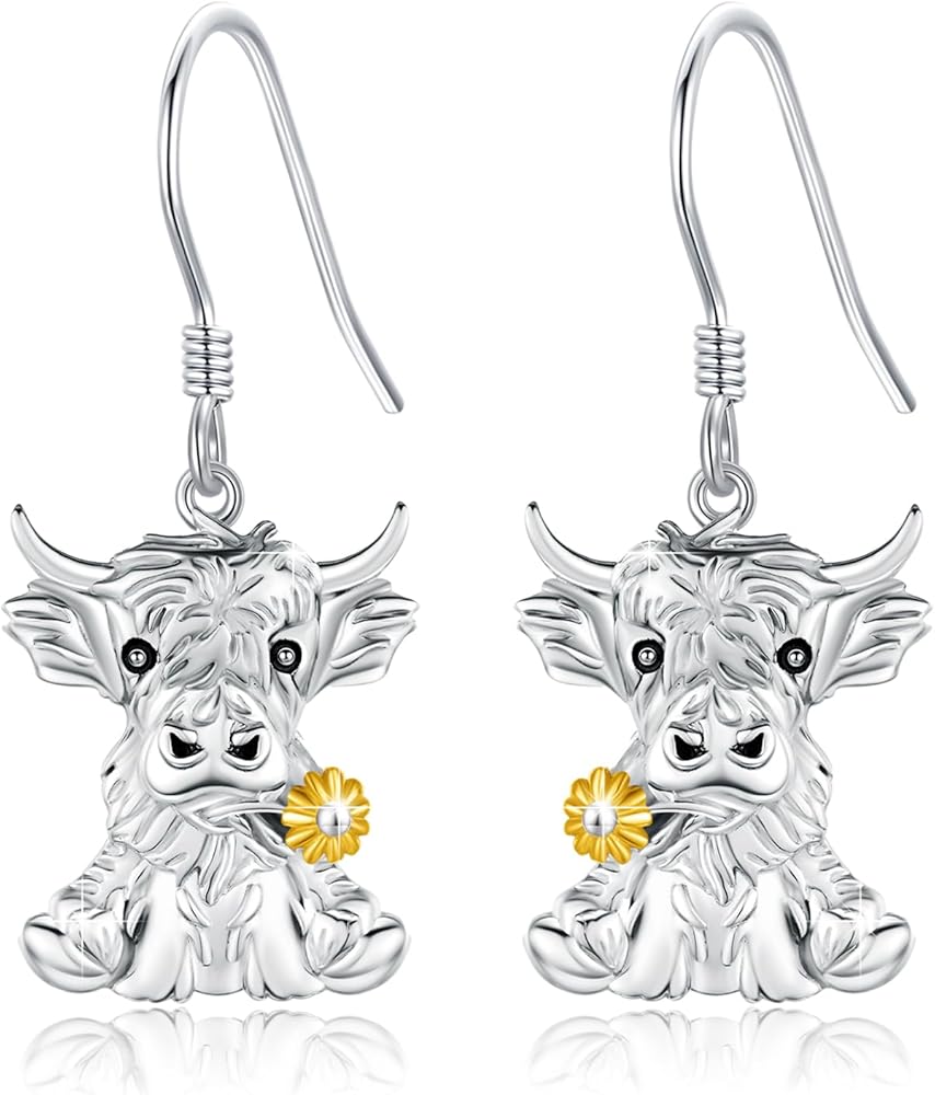🐮【🎁Perfect Highland Cow Earrings Gifts🎁】The highland cow dangle earrings sterling silver are gorgeous and sparkle well enough and comes with an elegant jewelry box,perfect for any gift giving occasions. Perfect highland cow earrings jewelry gift for mom, daughter, girlfriend, wife, friend and highland cow-lovers on holidays, Mother's Day, birthday, Christmas or any special day