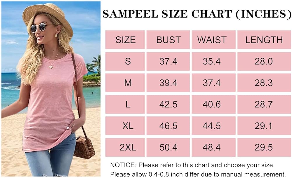 SAMPEEL Womens Short Sleeve Crew Neck Basic T Shirts Side Slit Tops