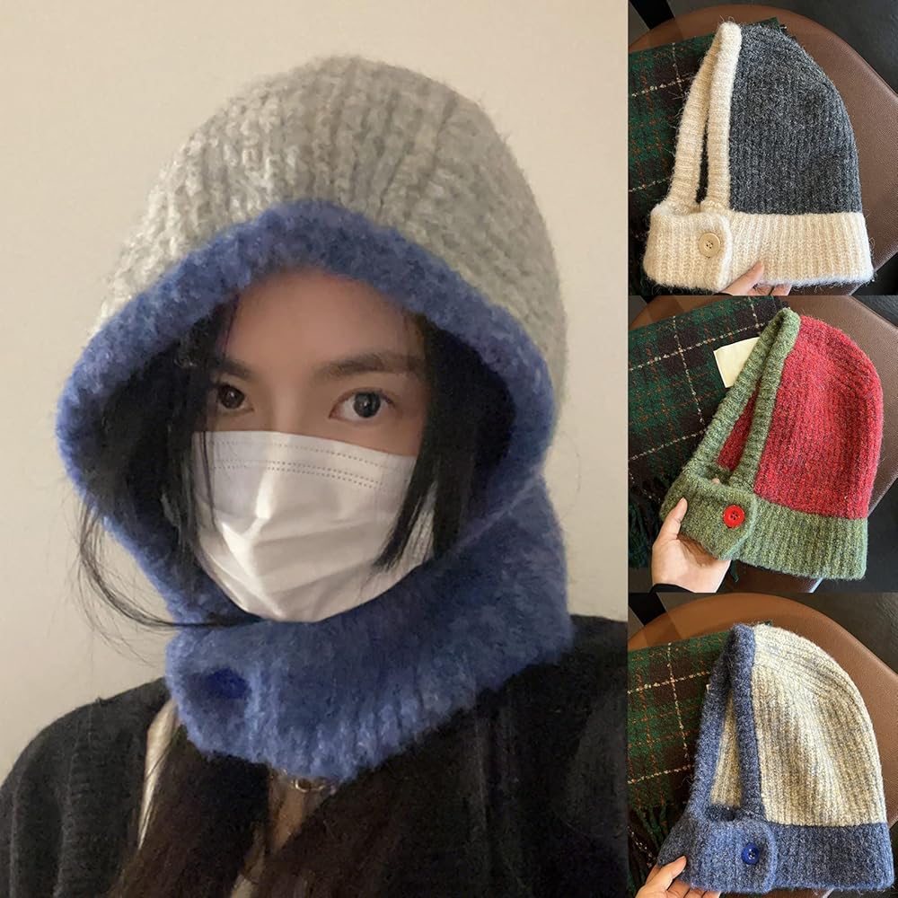 Knitted Beanie Hat: The knitted beanie hat feature with neck scarf, windproof and super cozy, contrast color can easily fit for different style outfit, soft material keep head warm and comfortable.