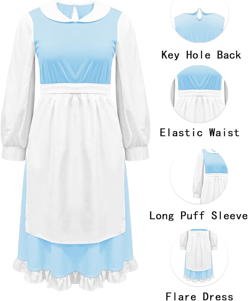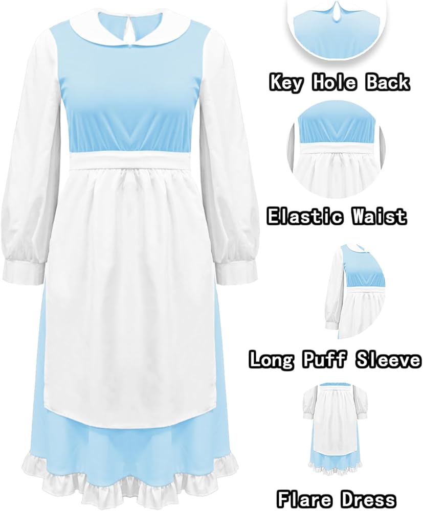 فساتين خادمة زرقاء - تناسب النساء والفتيات المراهقات، ومناسبة لجميع المواسم. ارتدي هذا الفستان اللطيف والمرح من Village Belle، وكن نجمة حفلتك القادمة!