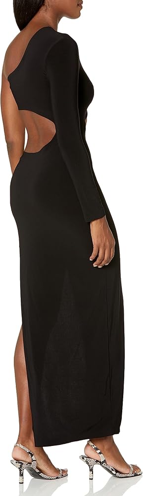 ONE SHOULDER, ONE SLEEVE LONG SIDE CUT OUT FITTED GOWN