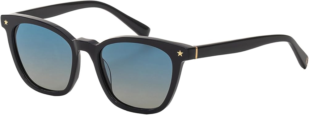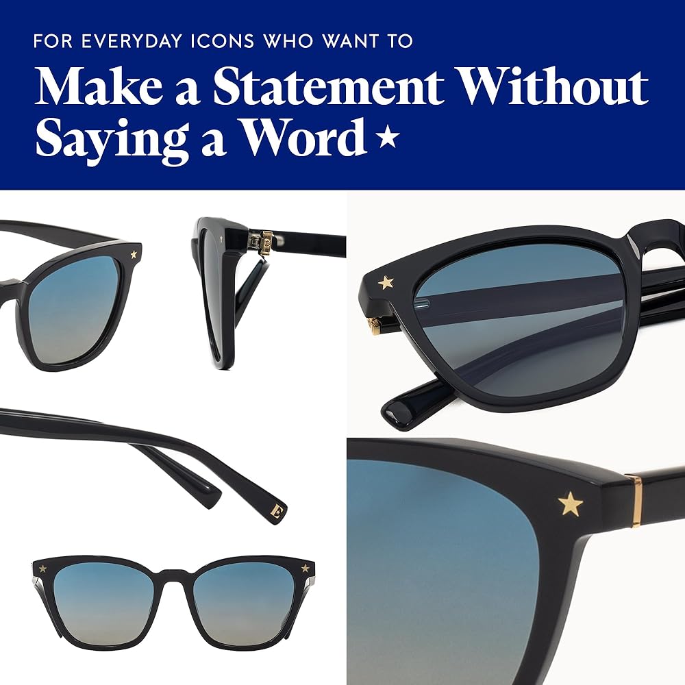نظارات Ducktail الشمسية من Elton John Eyewear: مستوحاة من قصة الشعر الأنيقة ذات الحواف المنحنية التي كان يرتديها زوج أم Elton Derf، وهي عبارة عن إطار معدني فاخر مصنوع من الأسيتات يجسد روح عزف الجيتار في الخمسينيات من القرن الماضي. تتميز Ducktail بشكلها الكبير ونمطها باللونين الأبيض والأسود، بعدسات مستقطبة باللون الرمادي، وحافة عين شديدة اللمعان، ونمط دانتيل من الأسيتات، وعلامات على شكل نجمة E مميزة. لا يمكنك أن تبدو أكثر سخونة باللونين الأبيض والأسود. حجم متوسط