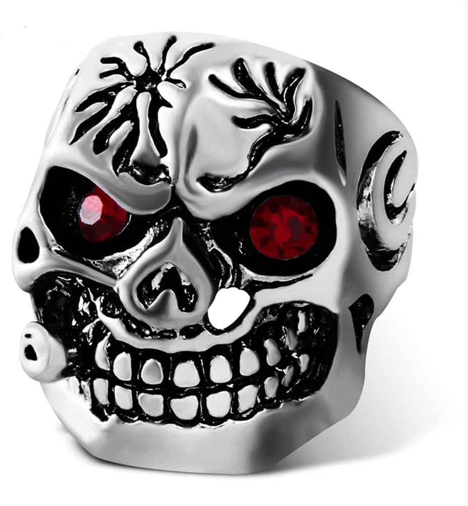 خاتم رجالي على شكل جمجمة مجوهرات بانك مع عيون كريستالية خاتم ذكر (7)