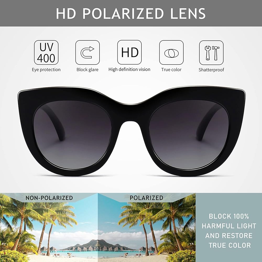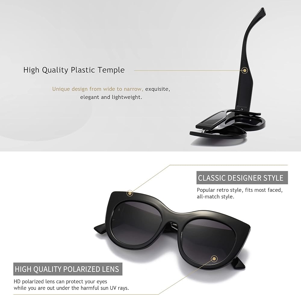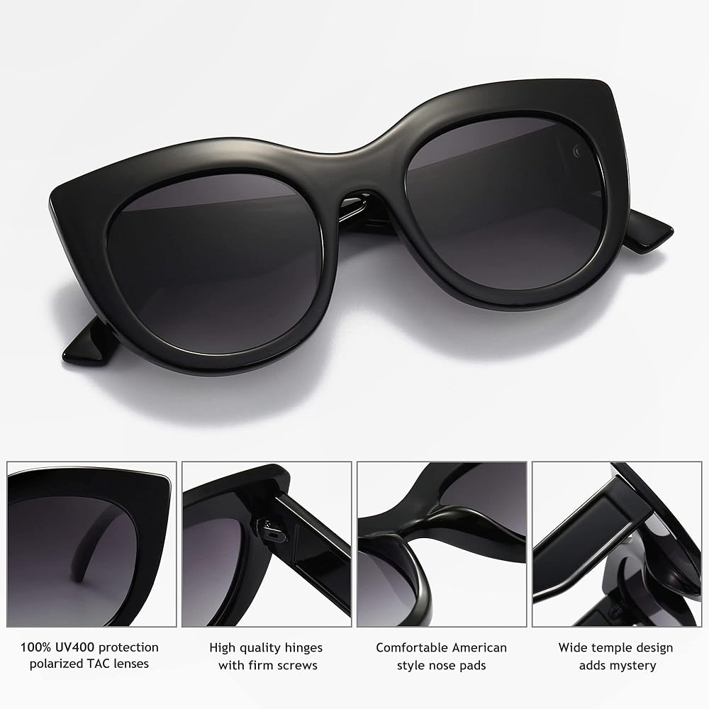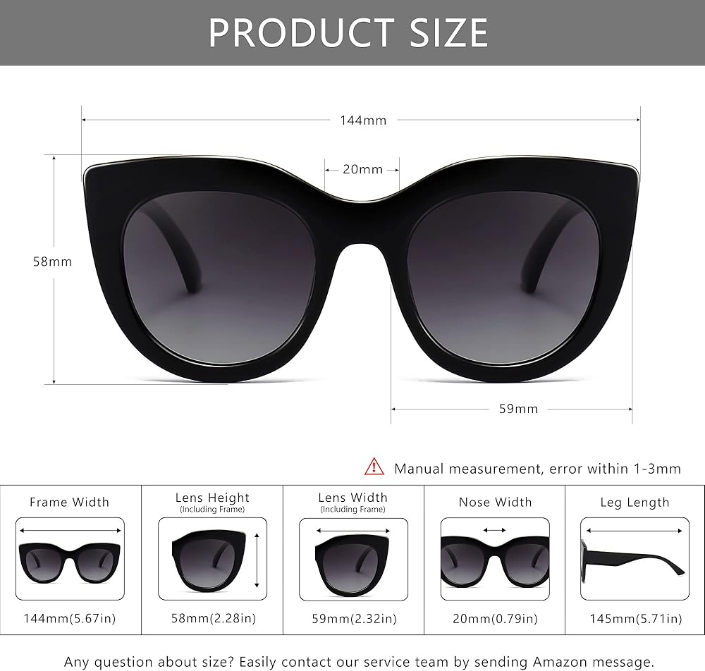 تصميم عين القطة كبير الحجم - طراز عين القطة الأنيق ذو الحجم الكبير هو طراز عصري كلاسيكي ودائم للأشخاص، ومناسب لوجوه معظم الأشخاص وكذلك للسبعينيات والثمانينيات والتسعينيات، وحس الموضة الرجعية العالية في أي مناسبة.