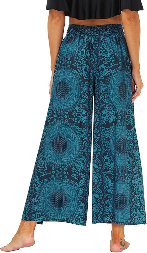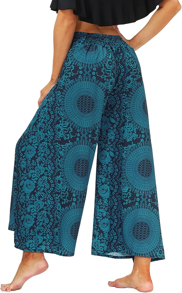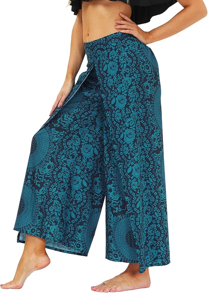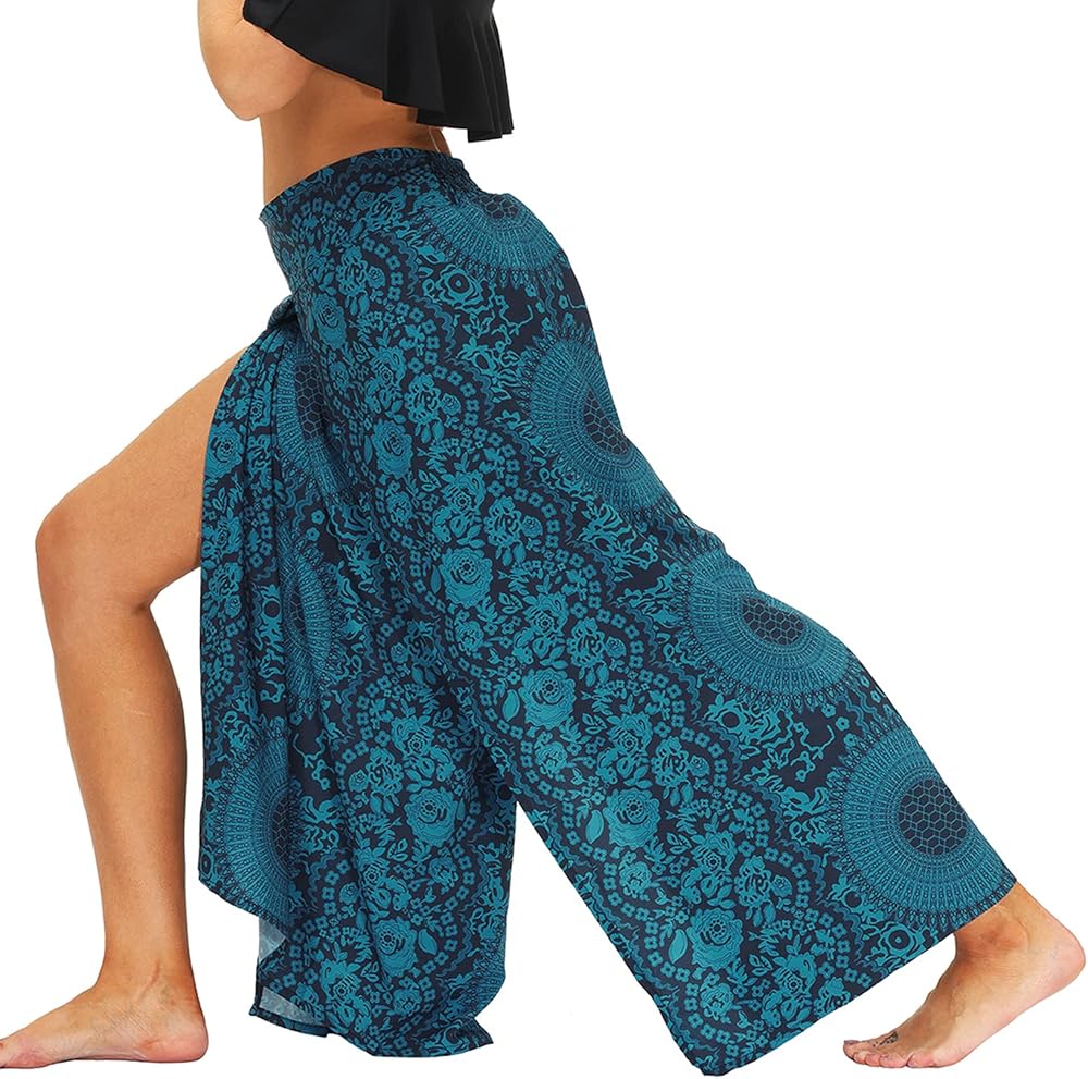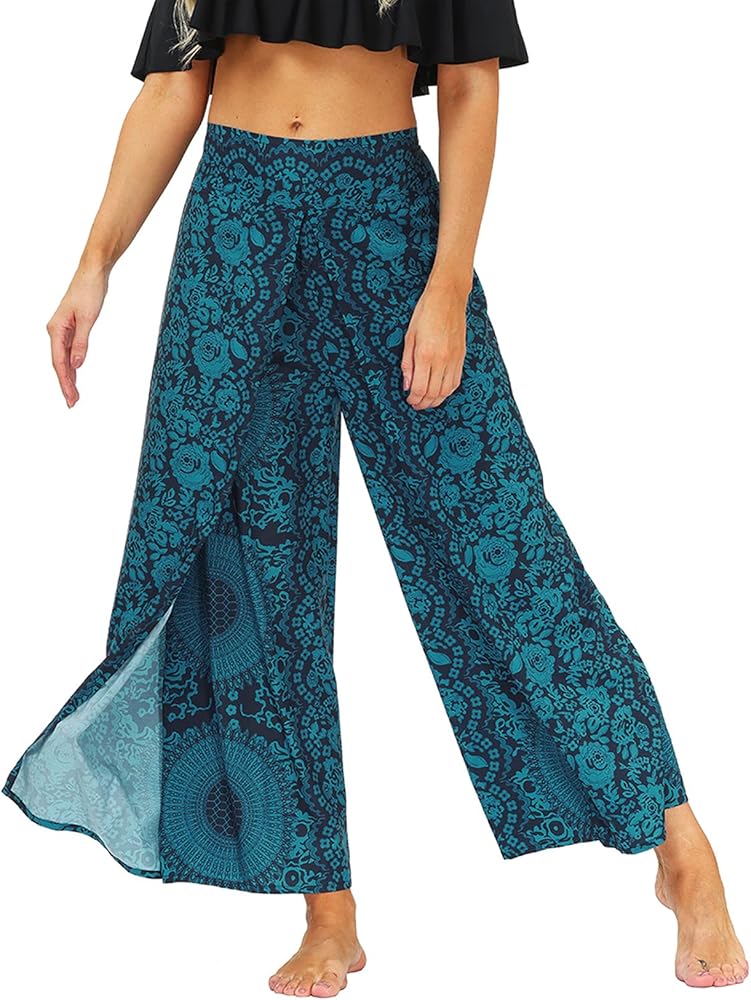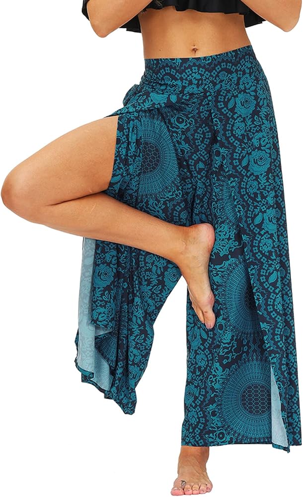 Lu's Chic Women's Boho Pants Harem Yoga Bohemian Side Split Palazzo Wide Leg Lounge Flowy Casual Slitted Beach Summer Pant