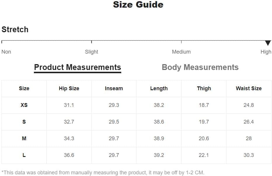 Small: Hip Size: 32.7", Inseam: 29.5", Length: 38.6", Thigh: 19.7", Waist Size: 26.4"