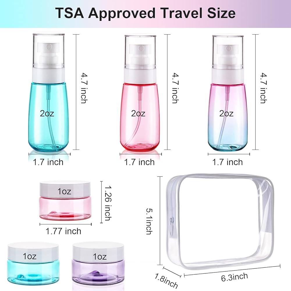 زجاجات أدوات الزينة المعتمدة من إدارة أمن المواصلات الأمريكية: تتضمن مجموعات حاويات كريم السفر هذه 3 قطع من مرطبانات الكريم سعة 1 أونصة/30 مل، وقطعتين من زجاجات الضغط سعة 3.4 أونصة/100 مل، وزجاجة رذاذ دقيقة سعة 2 أونصة/60 مل. صُممت حاويات السفر هذه لمستلزمات السفر، المصممة للسفر بدون متاعب، وهي مثالية للكريم والشامبو والبلسم ورش الوجه واللوشن وغيرها من مستحضرات التجميل ذات الحجم المناسب للسفر.