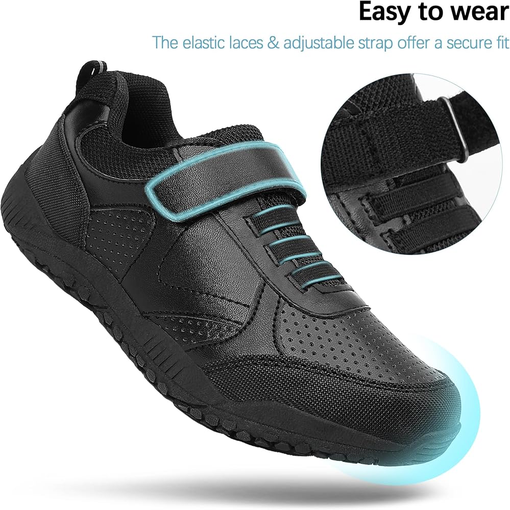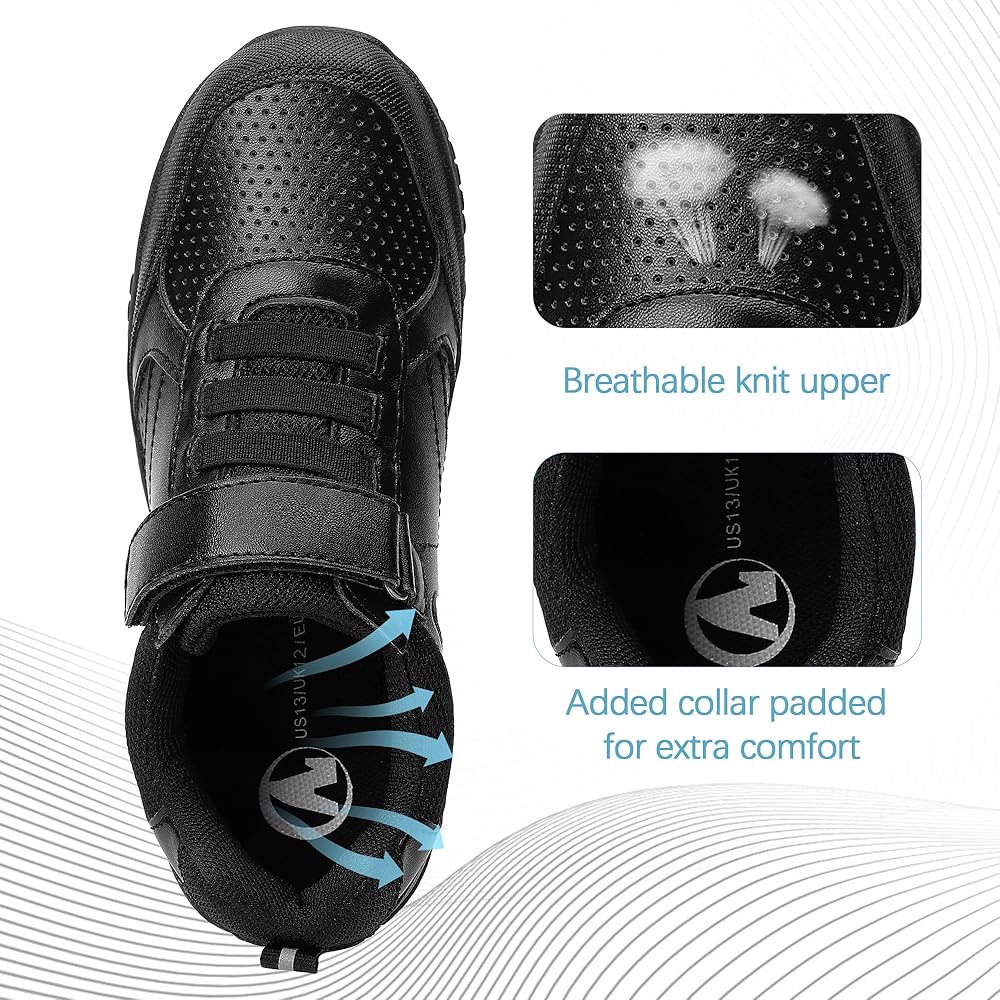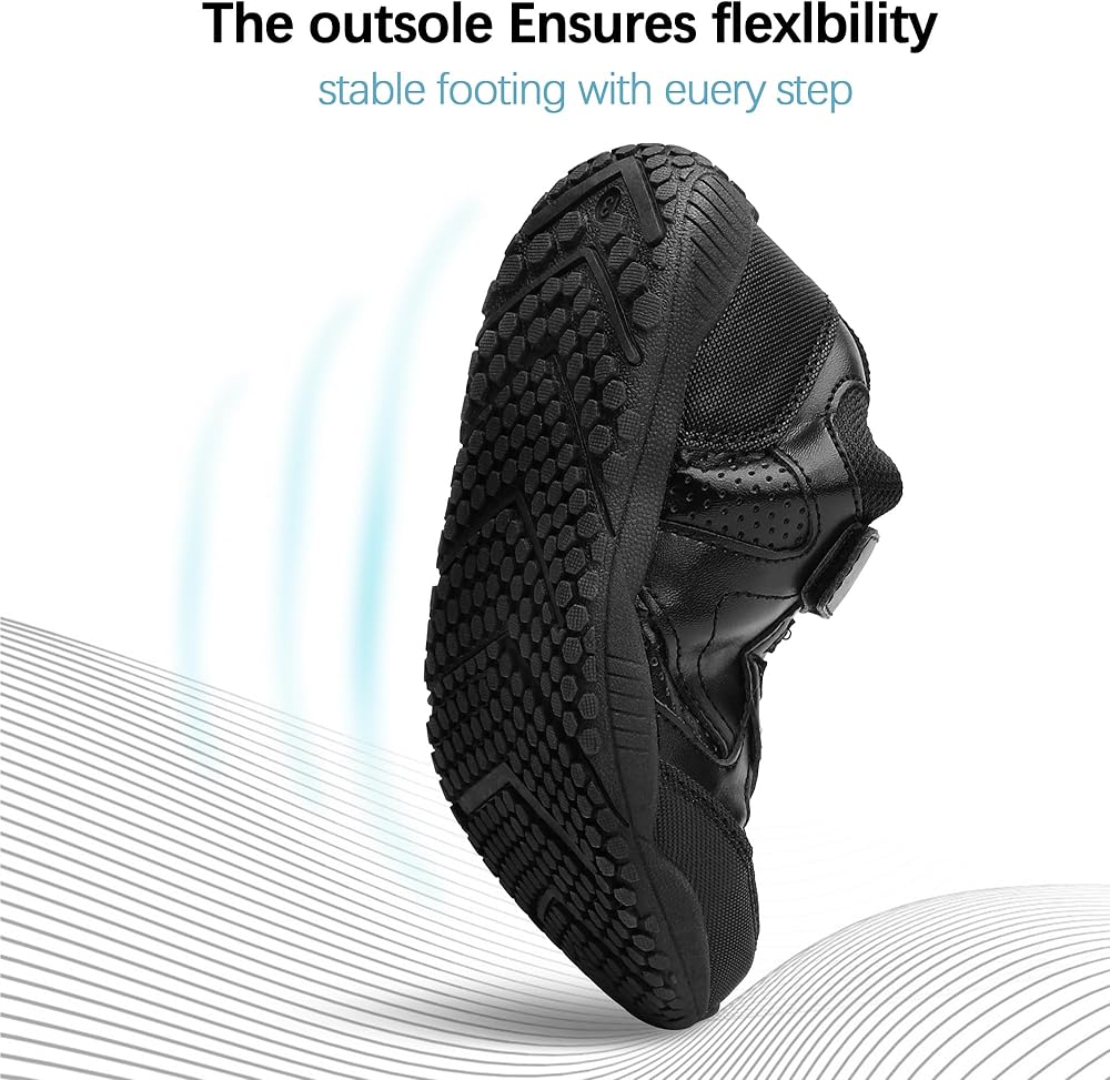 بدون أربطة مربوطة: خطافات وأشرطة على مشط القدم، لا حاجة لربط الحذاء، مما يجعل من السهل على الأطفال ارتداء الأحذية أو خلعها. هذه الأحذية الرياضية للأطفال مثالية للتنس والمشي والتنزه سيرًا على الأقدام واللعب والرقص والركض وتمارين الجري.
