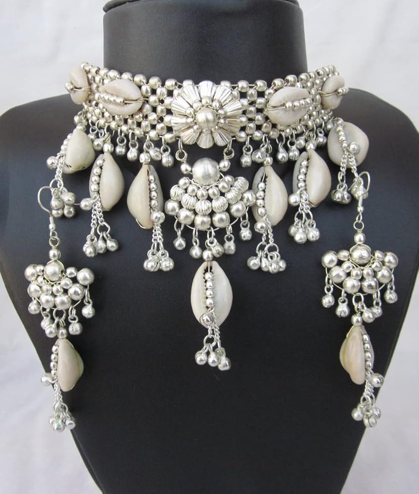 سلسلة ربط مصنوعة يدويًا من الخرز الحرفي مع سلك فضي ألماني مع قلادة من النحاس المصبوب بشكل معقد وسلسلة متدلية مطلية بالشرابة بلمسة نهائية من الفضة المؤكسدة - عمل مكثف عمالة - منتج ممتاز لأقل