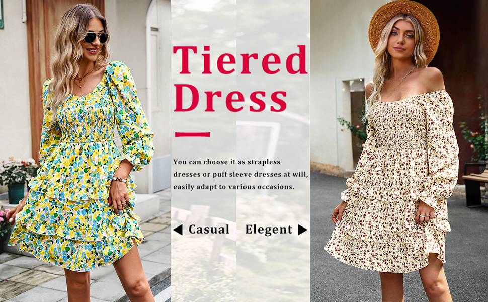 ★فستان مكشكش بطبقات للنساء: فستان زهري صغير لطيف له طريقتان للارتداء: كفستان طويل الأكمام أو فستان بدون أكتاف. زوج رائع مع سترة الدنيم أو القلادة أو وشاح الرأس أو حقيبة اليد أو الكعب أو الصنادل للحصول على مظهر فاخر. إنه فستان كاجوال رائع للعمل أو الخروج، فريد من نوعه طوال اليوم.