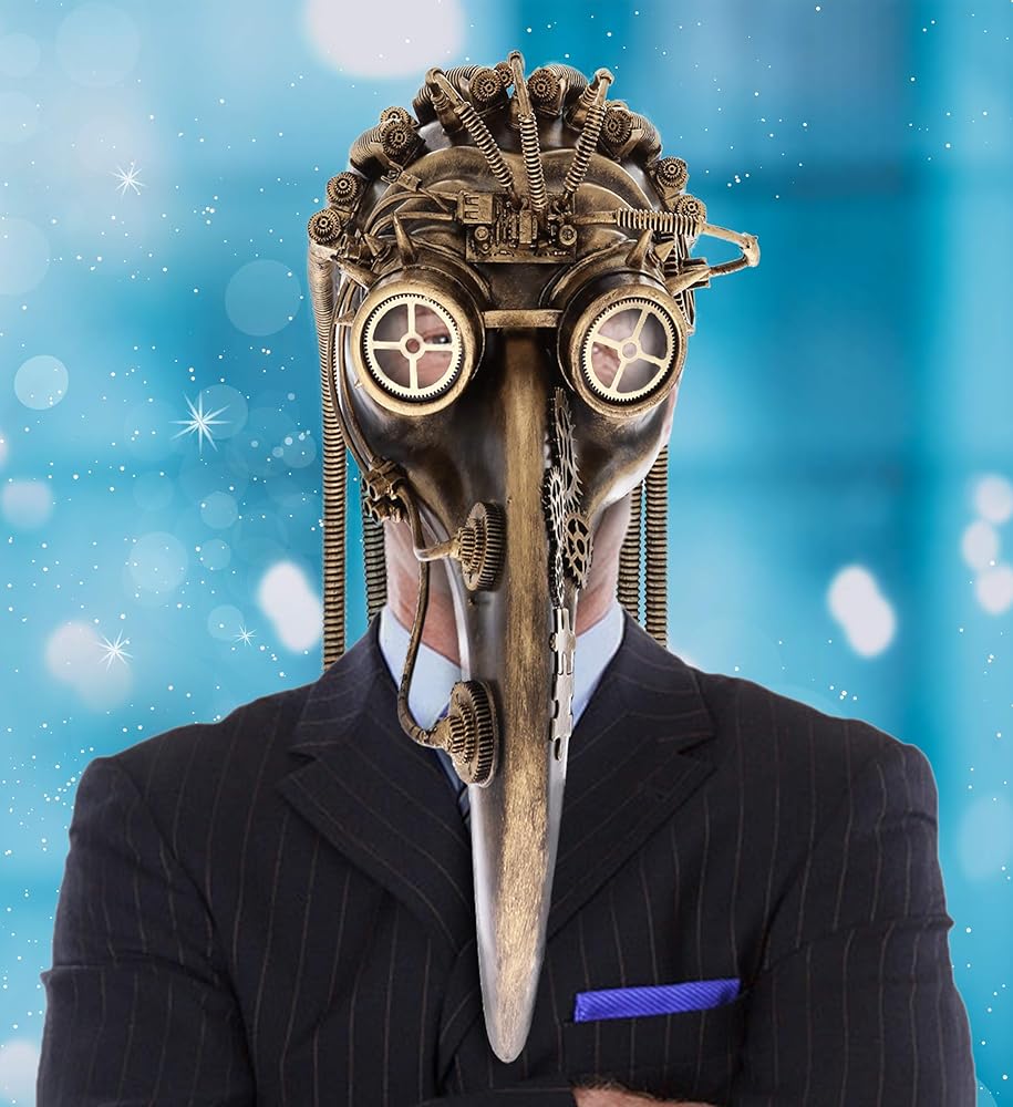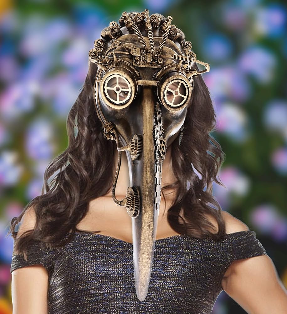 قناع طبيب الطاعون مخصص للبالغين الذين يحبون ارتداء الملابس للحفلات - هذا الإكسسوار لرأس قناع وجه الطيور مثالي للبالغين الذين يحضرون الحفلات ذات طابع البخار. زي مثالي غير تقليدي لحفلات الهالوين أو اللعب التظاهري أو الحفلات التنكرية أو كشك الصور والمزيد! كن الأفضل في الأزياء عند تصوير شخصية، أو Steampunk، أو الطراز القديم، أو العصر الفيكتوري أو الصناعي، أو موضوع الناجين من العواقب.