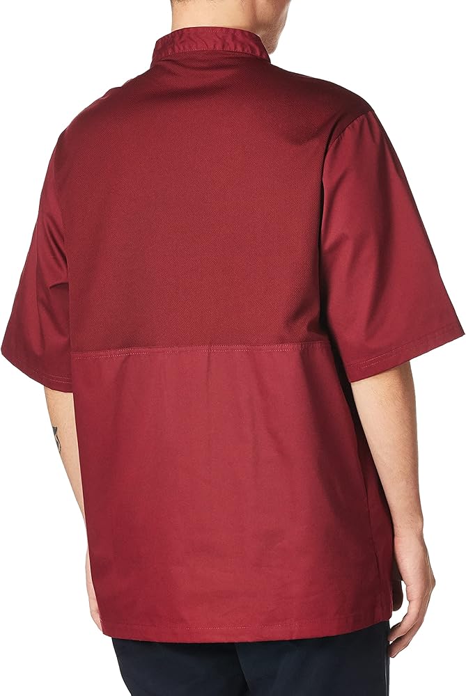 Short sleeve chef coat/jacket with mesh back panel for ventilation and cooling