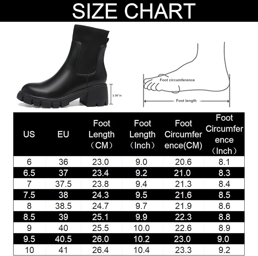 • نعل الحذاء: تتميز أحذية تشيلسي النسائية هذه بكعب مكتنز مقاس 2.36 بوصة ونعل من المطاط اللدن حراريًا غير قابل للانزلاق للحفاظ على ثبات كل خطوة وتزويدك بدعم مريح.