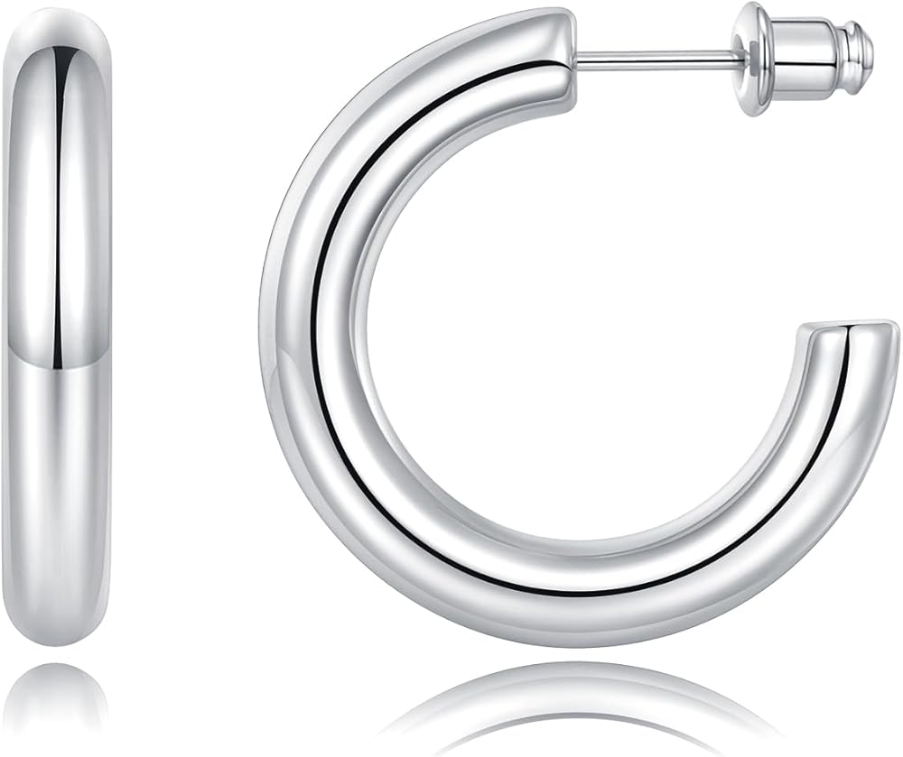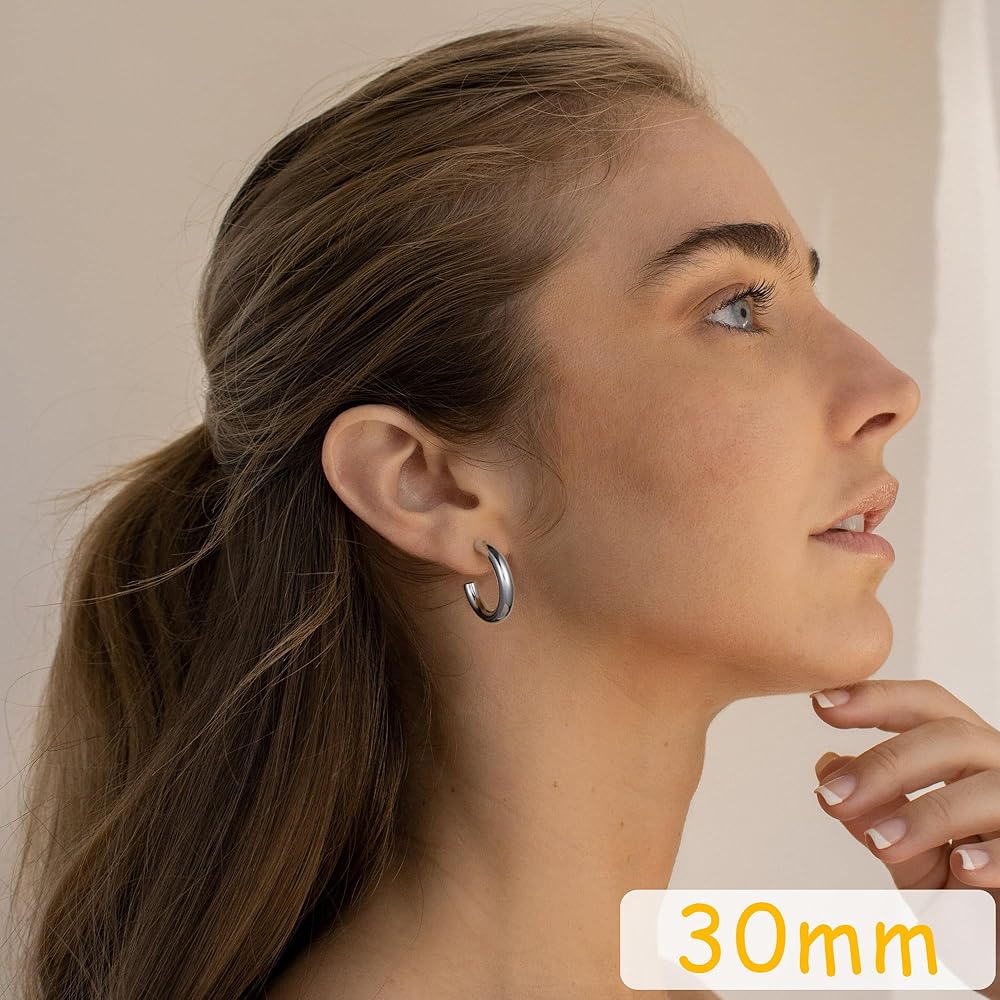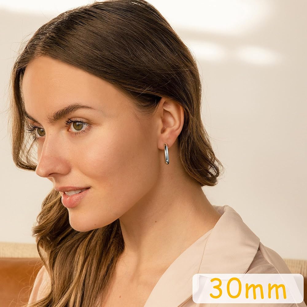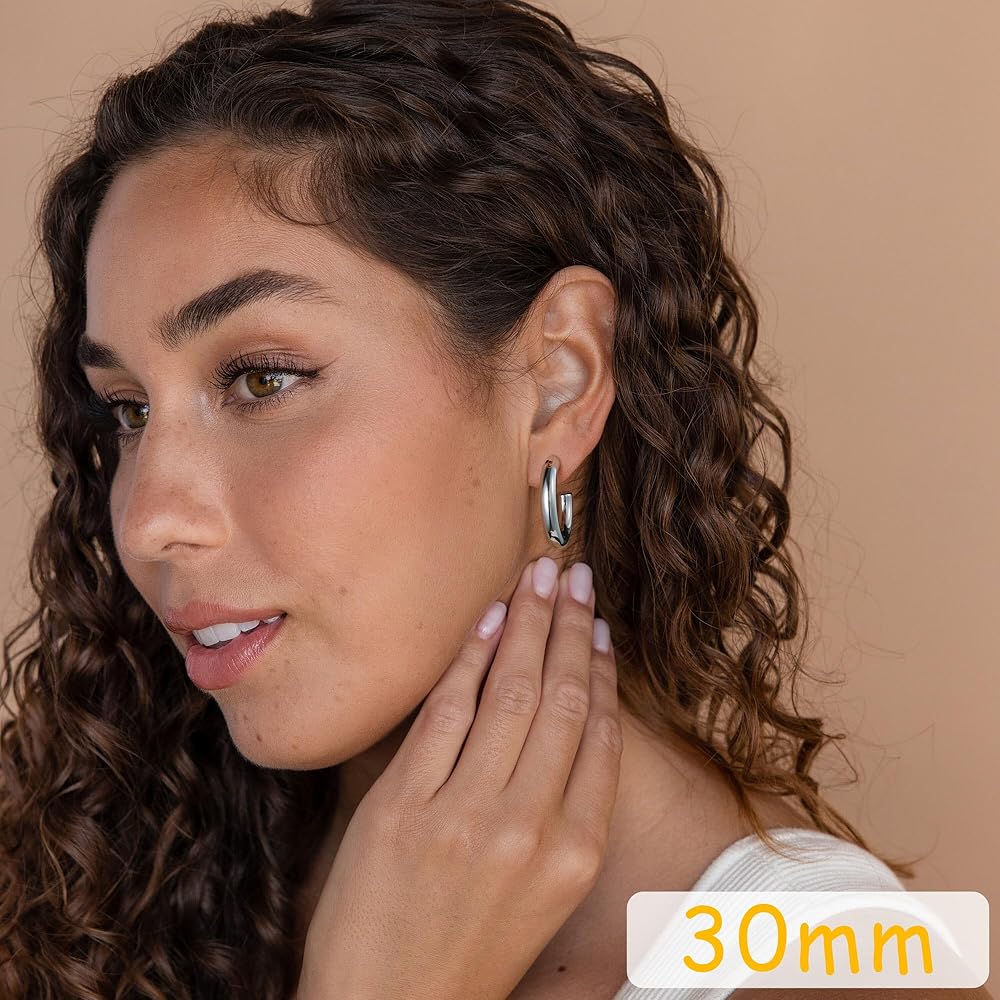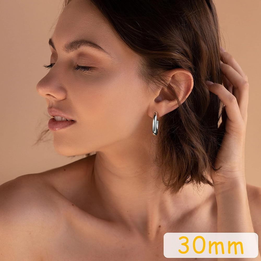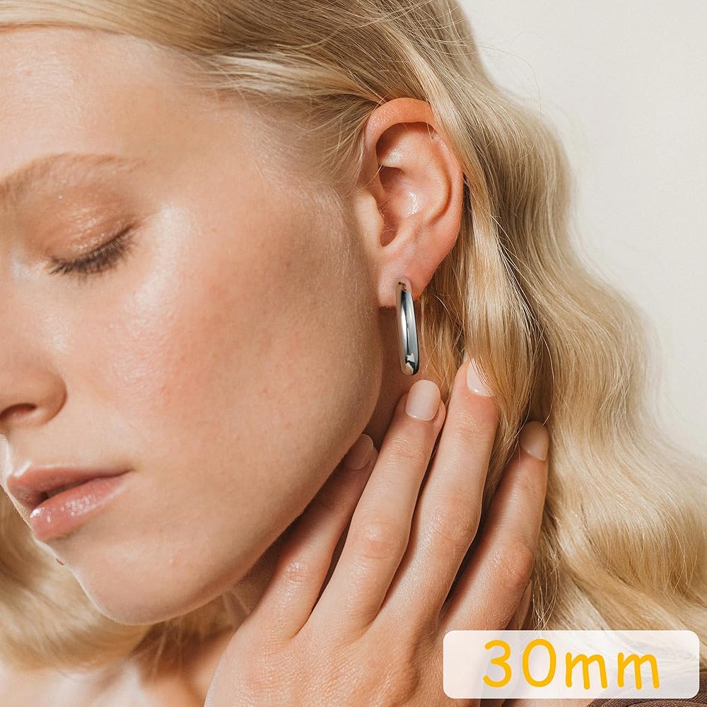 ❤مادة مريحة: هذه الأقراط الفضية المكتنزة للنساء مصنوعة من النحاس المطلي بالفضة والتي لن تسبب ضررًا لأذنيك. مجموعة الأقراط الحلقية مريحة للأذنين الحساسة عند ارتدائها، ولا تتقشر أو تفقد لونها. طلاء مذهل عالي الجودة، خالٍ من الخدوش، وخالي من النيكل، وخالي من الرصاص، ولا يسبب الحساسية.