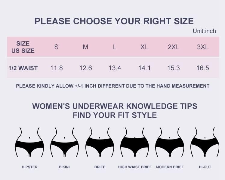 🎀{خيارات المقاس الكامل}: هذه السراويل الداخلية الناعمة للنساء S وM وL وXL وXXL و3XL مقاس US 0 إلى 16، تنطبق على الوزن 99-198 Ib laidies.