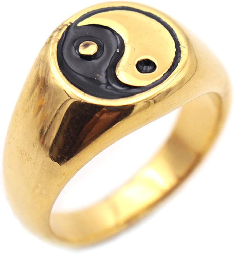 Biker Yin and Yang Band Rings Stainless Steel Tai Chi Symbol Wedding Manly Rings for Men Women, Size 7 - 13