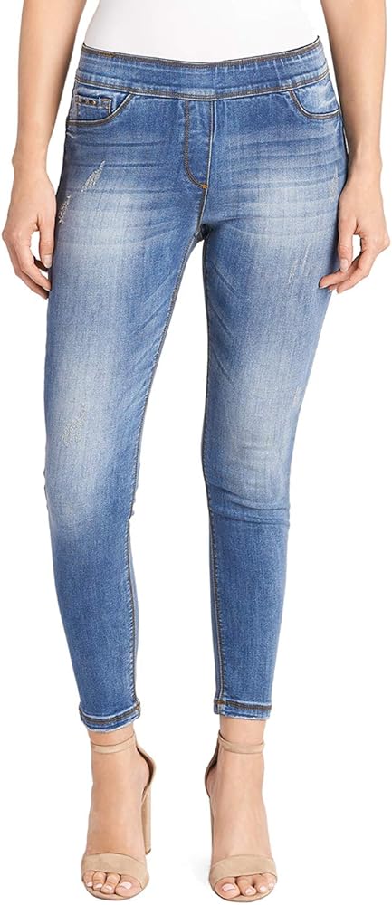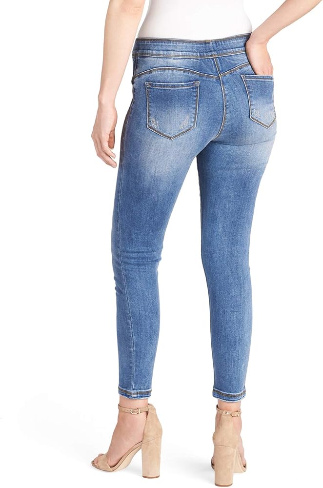 The perfect pull-on skinny jean for every body type! OMG jeans combine the comfort of a smoothing fabric with street-chic style. Tummy-slimming, wide elastic waistband holds you in (goodbye, muffin top) and lifts you up. Back pockets and ankle length (28" inseam).
