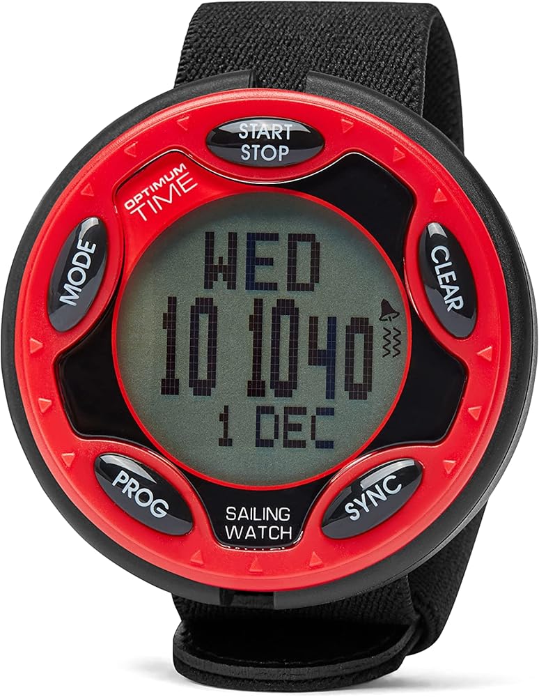 3 Row display to show time and timer together. User selectable 1 minute periods – ideal for match racing. "Sync Button". The famous Optimum Time invention to quickly get back to Race time if the gun is missed